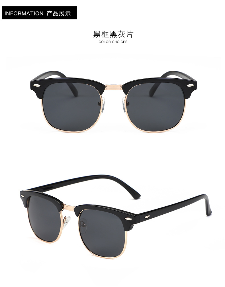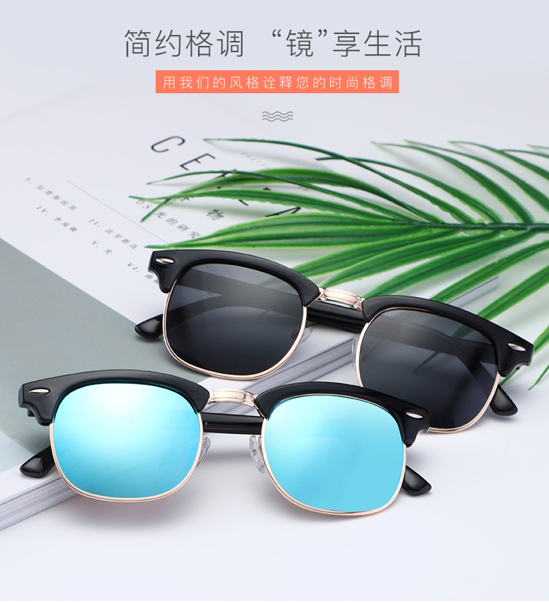 3016偏光镜钓鱼防晒时尚潮流墨镜骑行太眼镜复古男女米钉太阳镜
