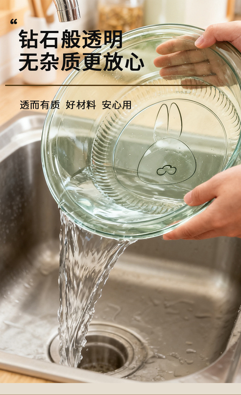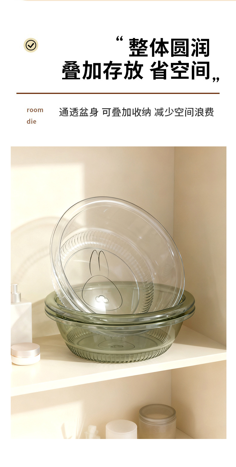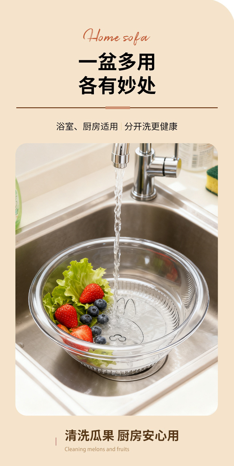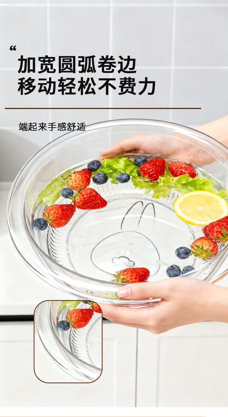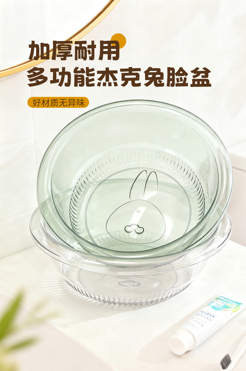 杰克兔透明脸盆厨房多功能加厚耐用塑料盆家用浴室洗脸盆批发