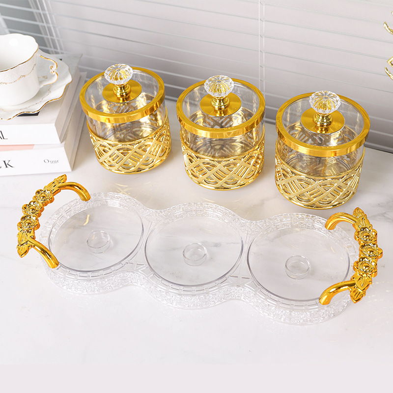欧式塑料玻璃感糖果收纳罐透明收纳罐糖果罐餐桌客厅装饰实用摆件