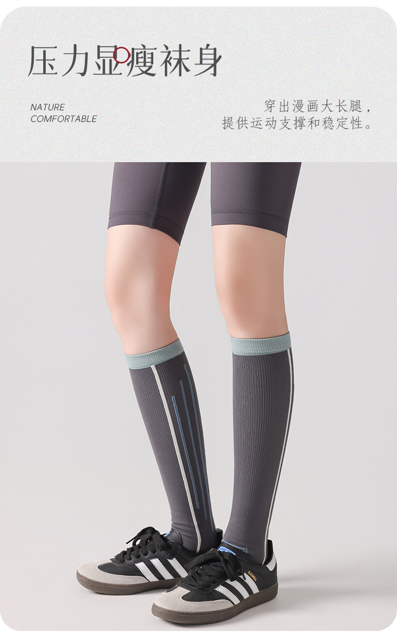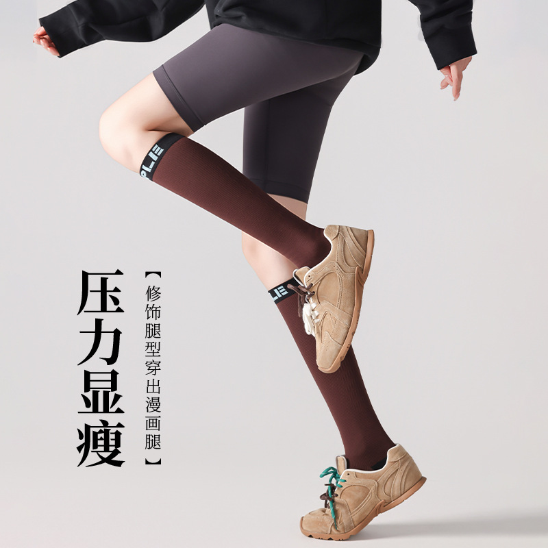 专业运动跑步小腿袜子女春秋长筒跳绳健身肌能压缩跳绳压力袜