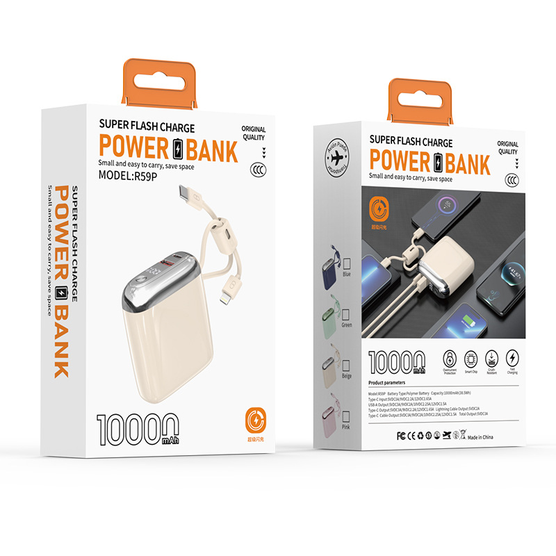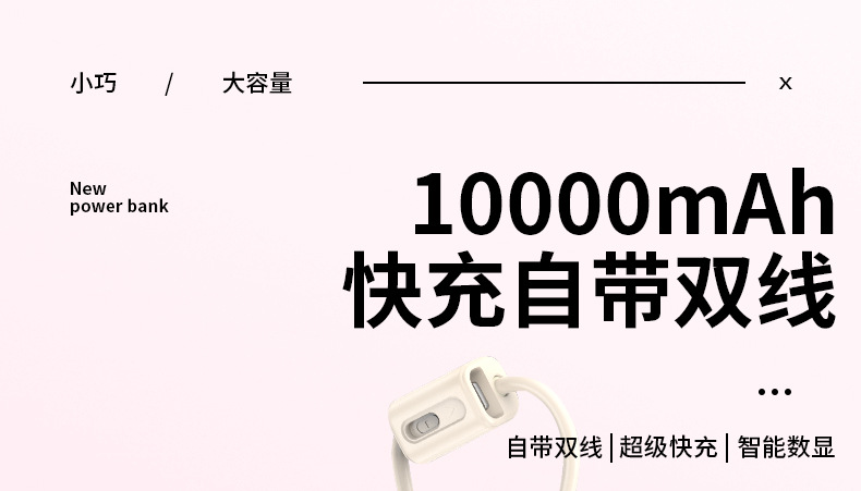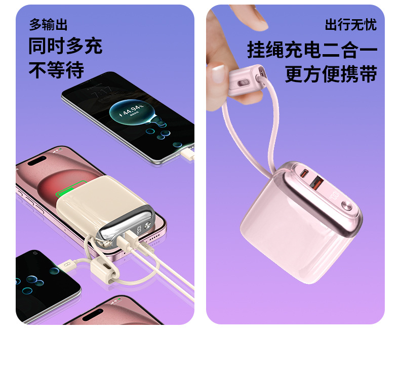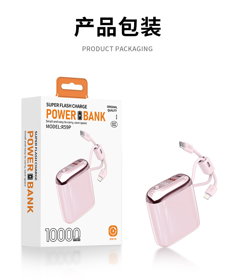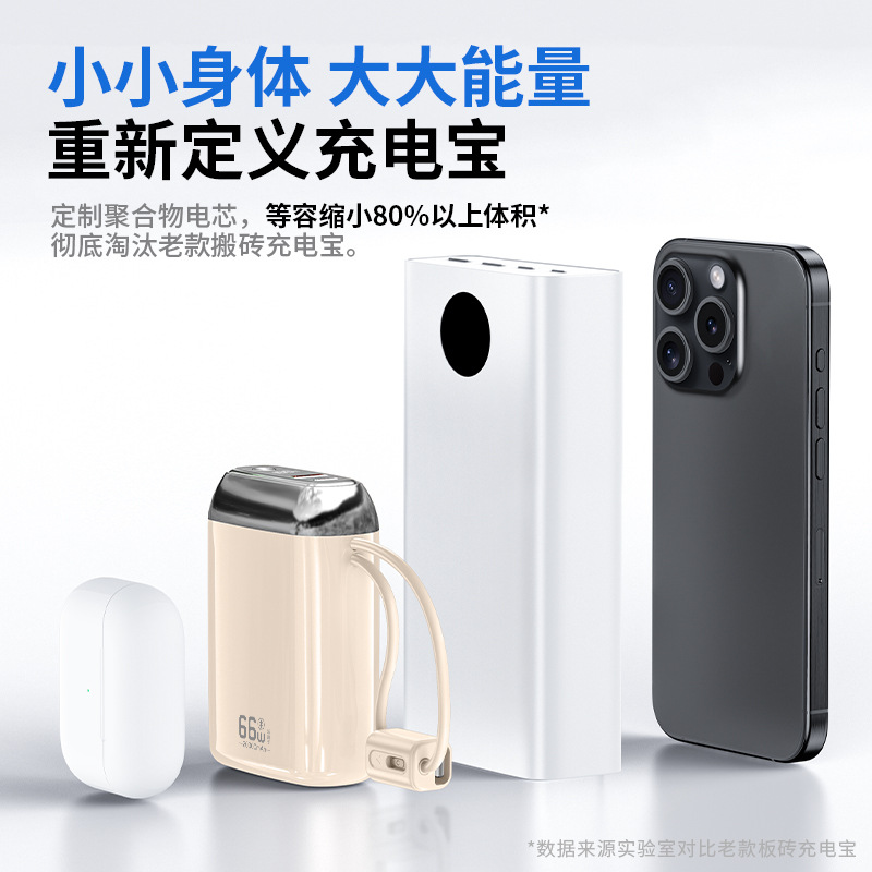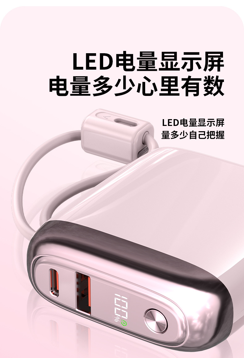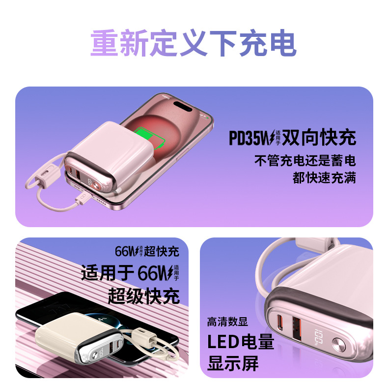 3C超级快充电宝自带线礼品20000毫安数迷你小巧便携移动电源定制