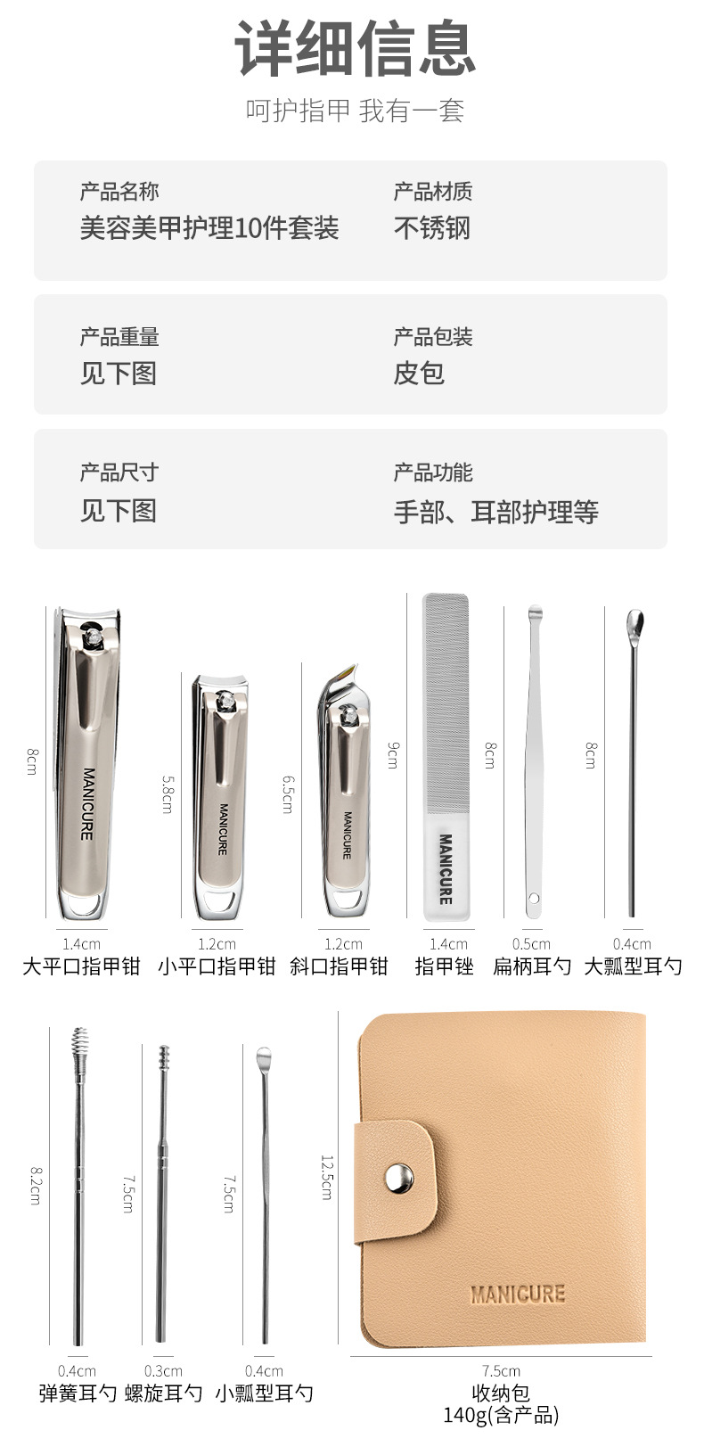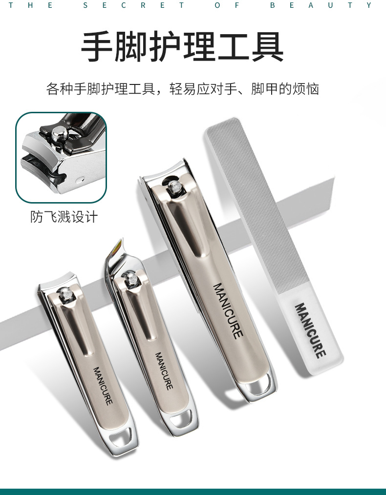 便携不锈钢指甲刀套装斜口指甲刀护理美容工具指甲钳指甲剪刀套装
