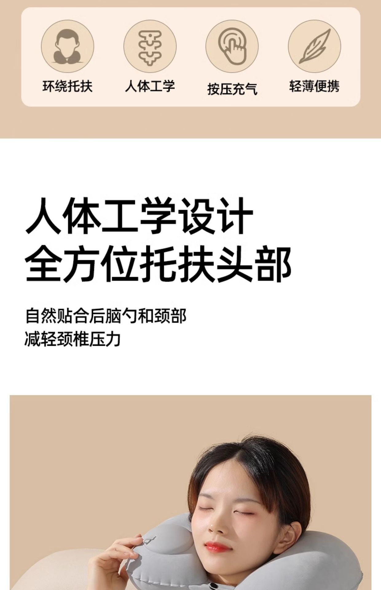 颈枕u型枕按压充气枕头便携坐车飞机护脖子旅行神器u形枕旅游靠枕