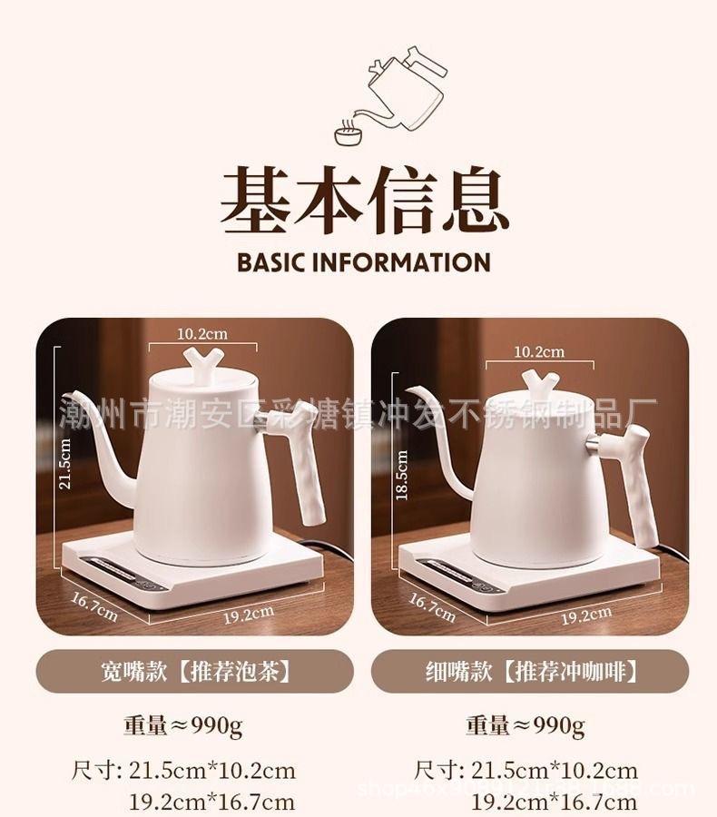 细长嘴电热壶304不锈钢手冲壶智能温控泡茶壶咖啡壶恒温壶