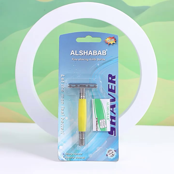 新款防滑手柄老式剃须刀手动刀架便携男士刮胡刀双面刮脸毛刀