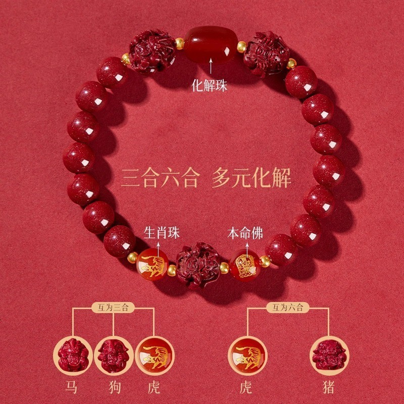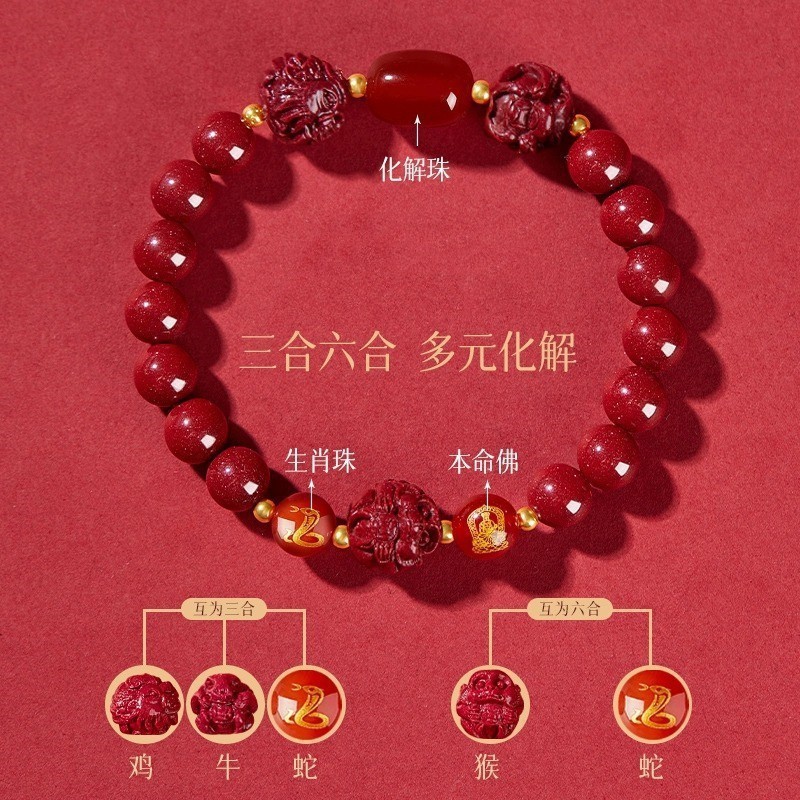 2025属蛇朱砂手串天然正品龙年本命年朱砂手链三合六合普贤尊者