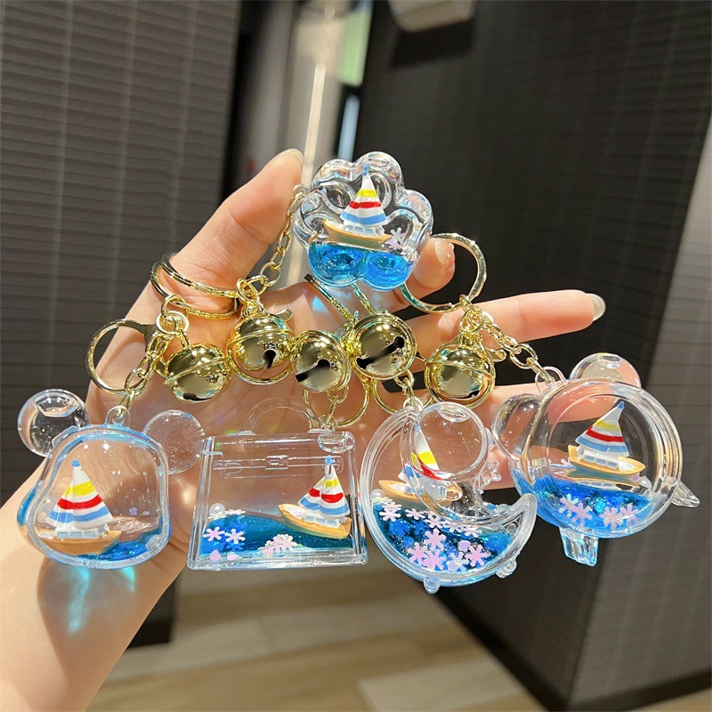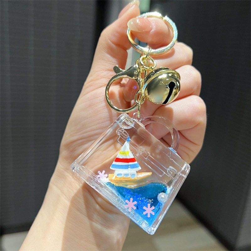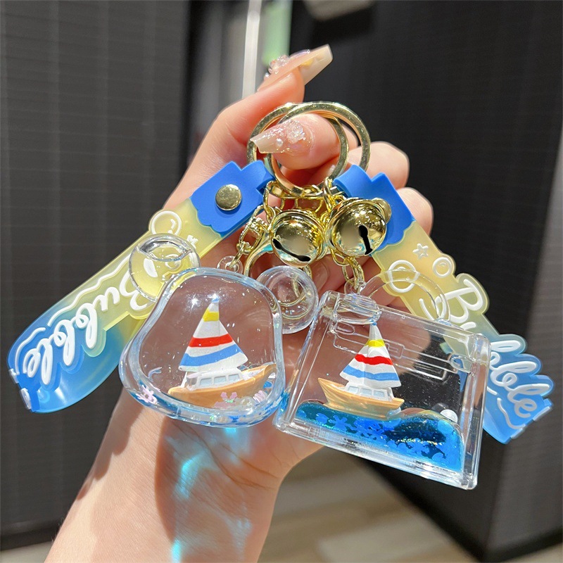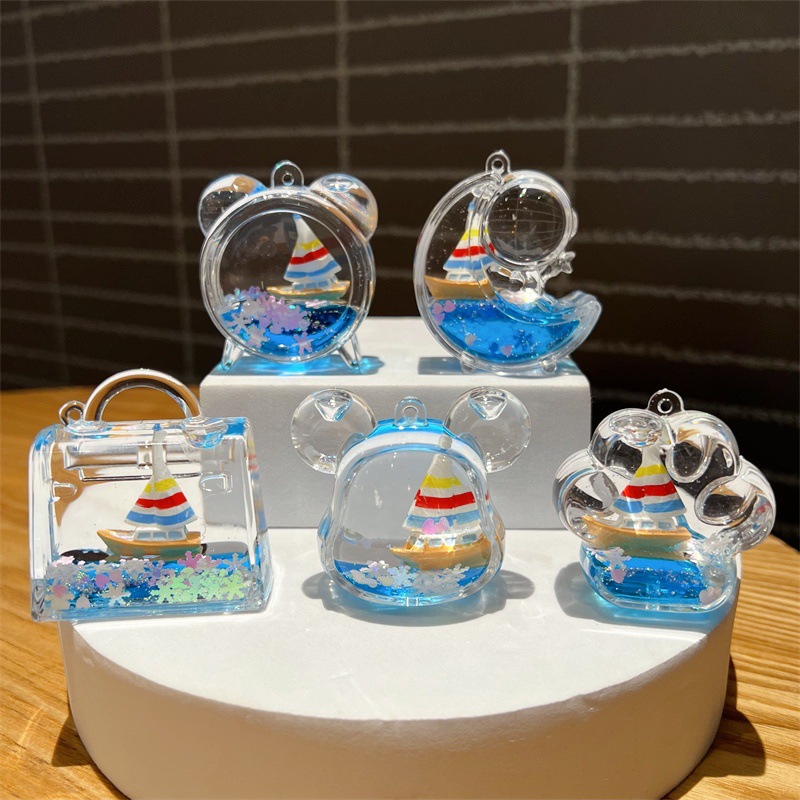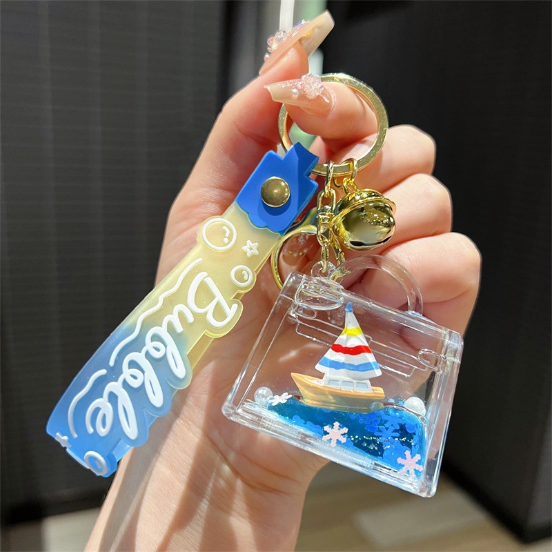 亚克力入油一帆风顺流沙瓶钥匙扣精致液体蓝色帆船漂流瓶挂件礼品