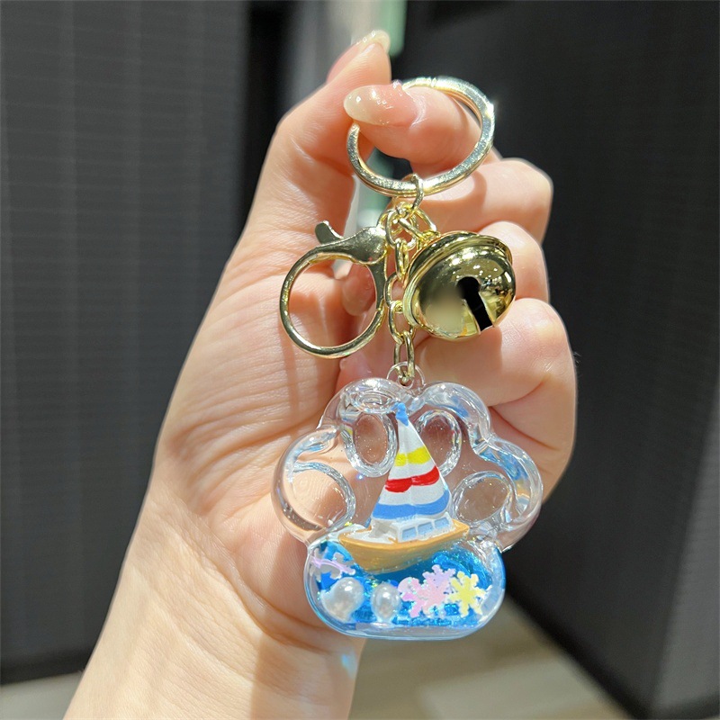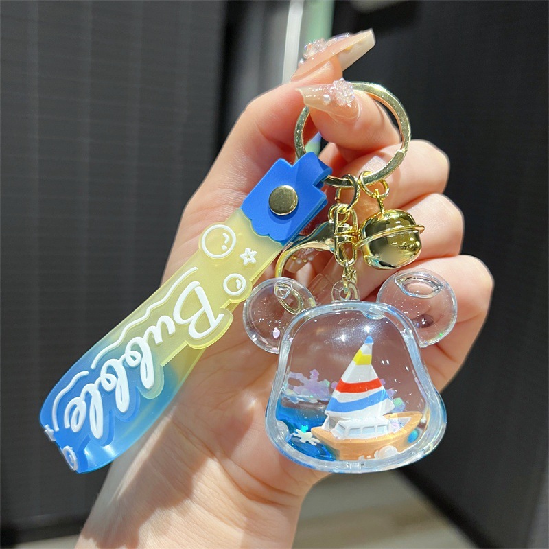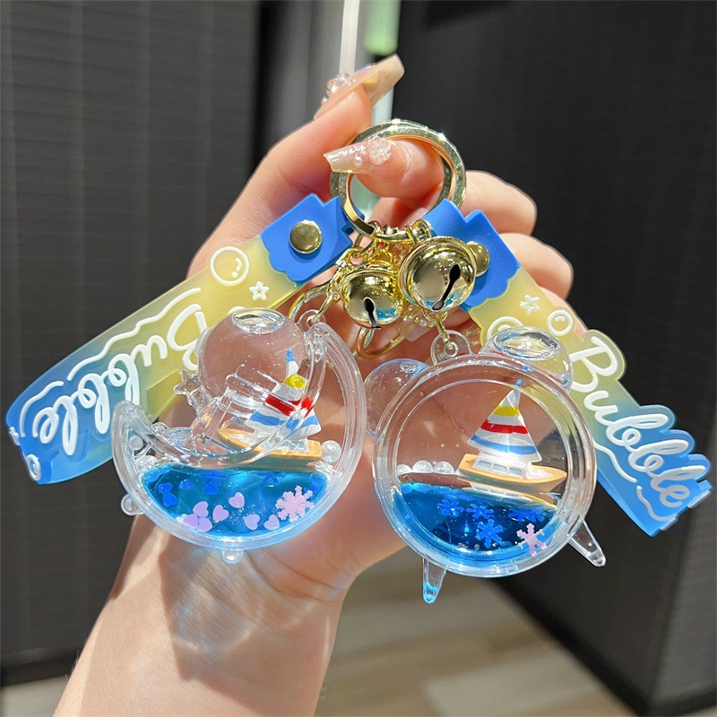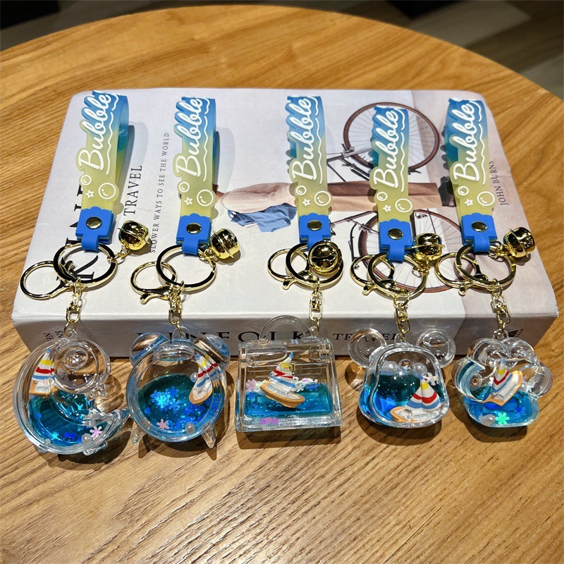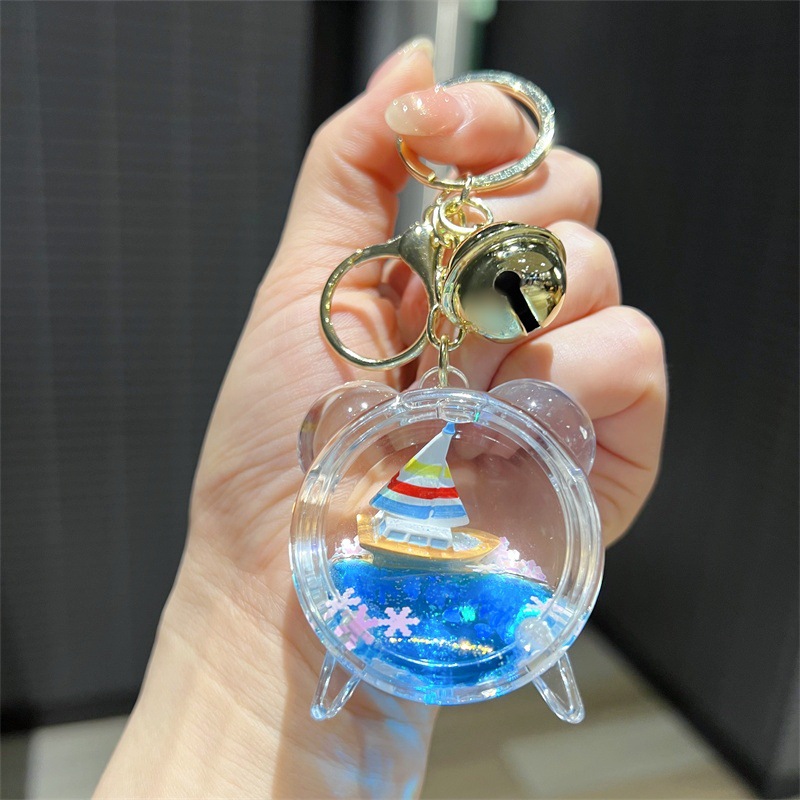 亚克力入油一帆风顺流沙瓶钥匙扣精致液体蓝色帆船漂流瓶挂件礼品