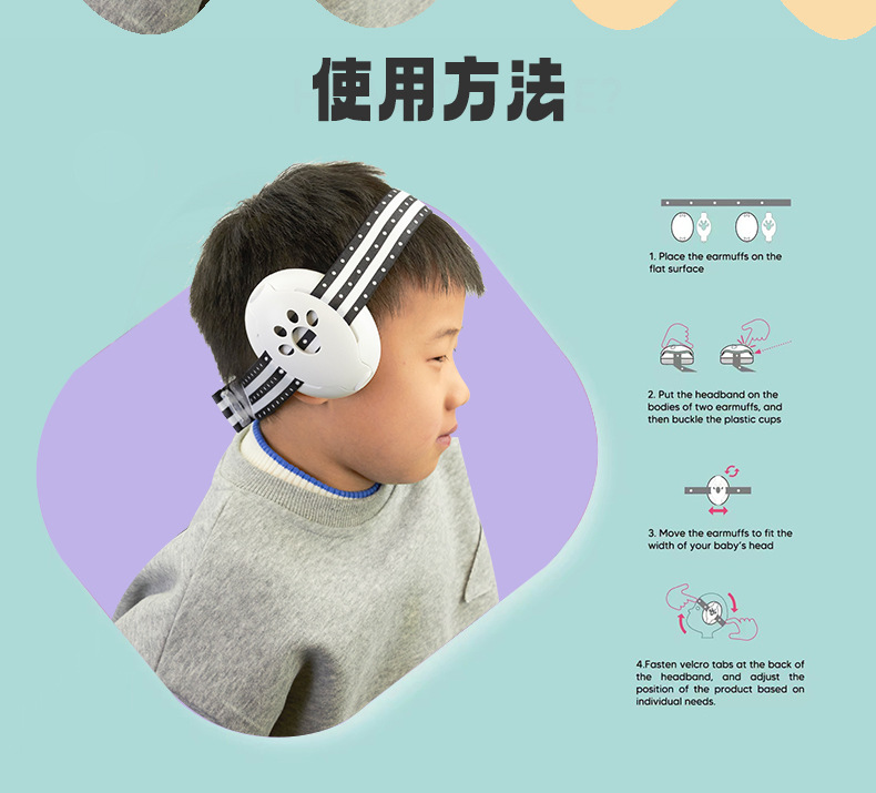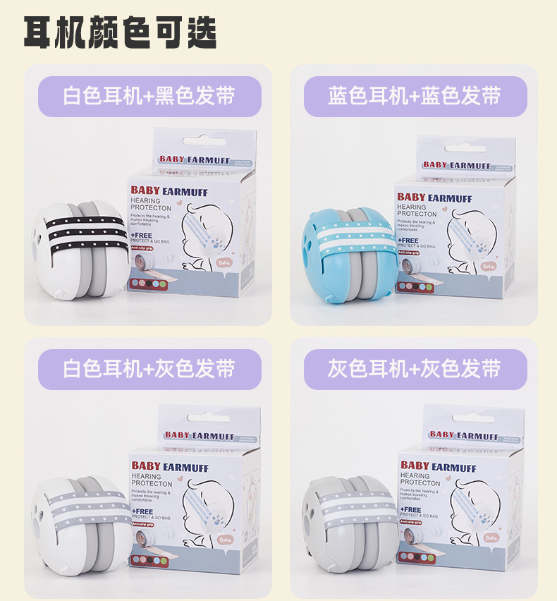 亚马逊工厂供应睡眠隔音婴儿耳罩防噪音儿童防护耳罩发带款