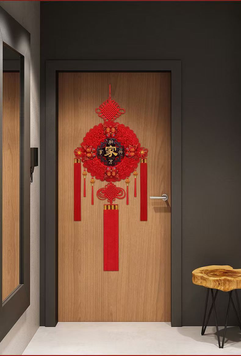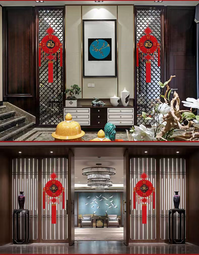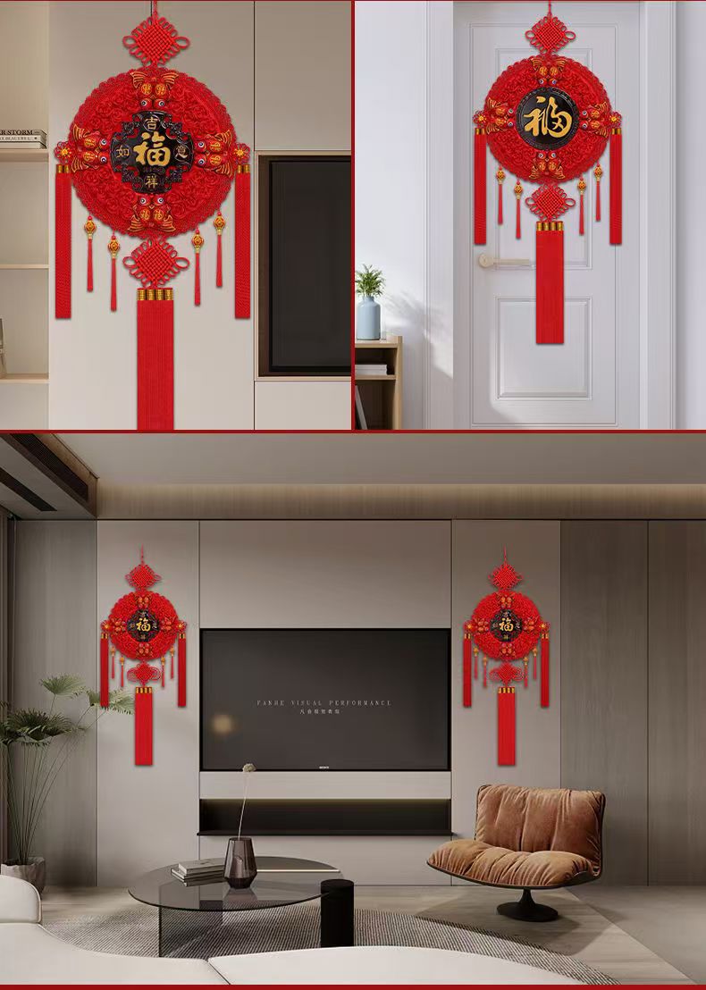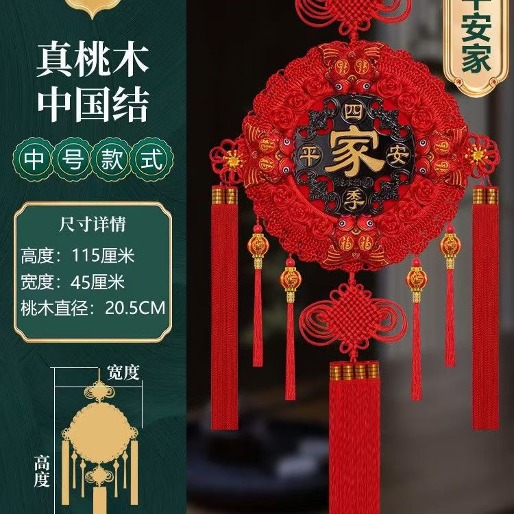 2025蛇年新款中国结八鱼灯笼圆形桃木福字挂饰客厅大号乔迁玄关