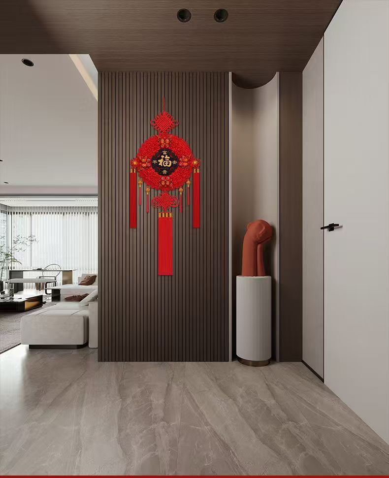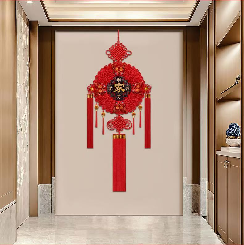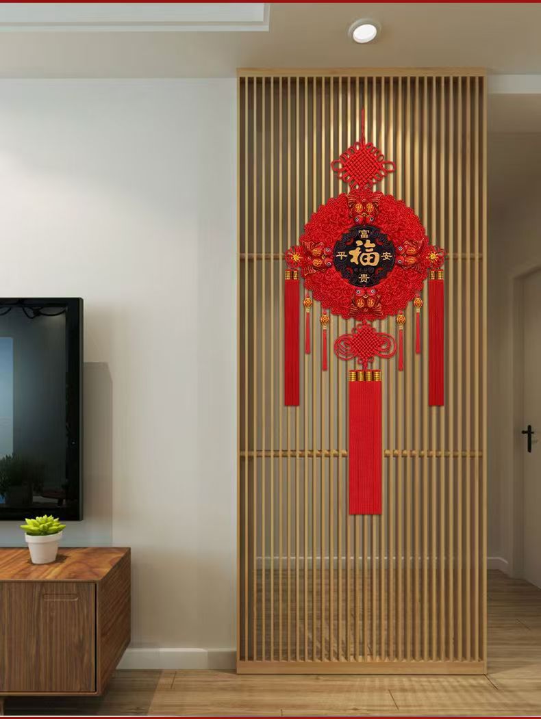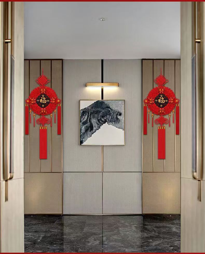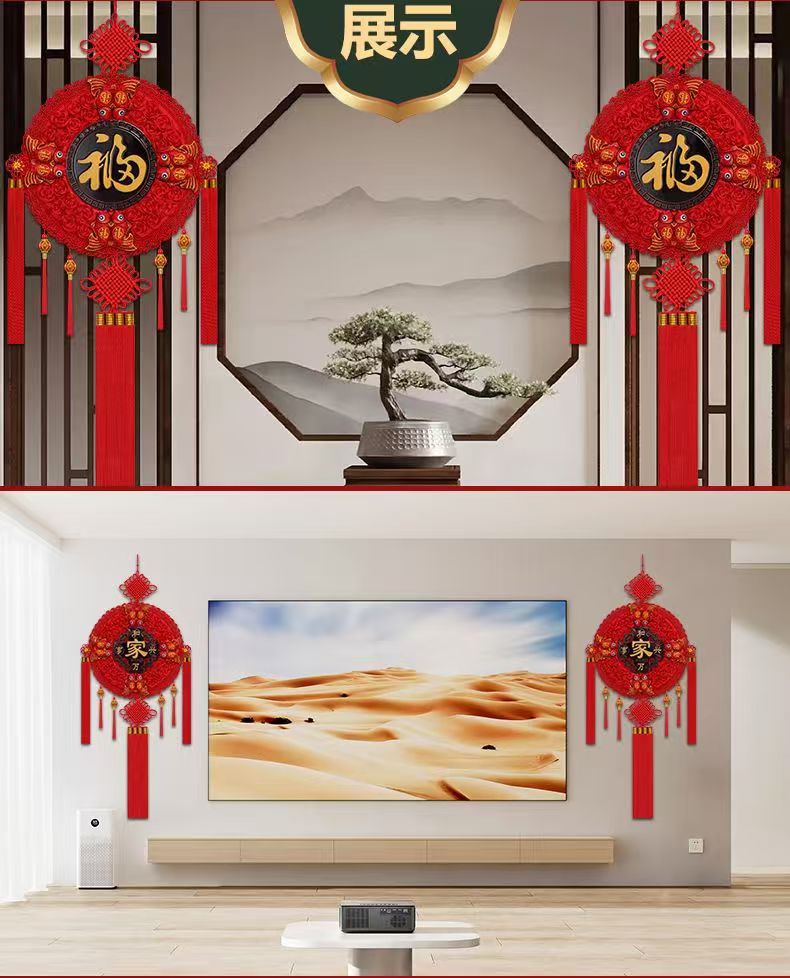 2025蛇年新款中国结八鱼灯笼圆形桃木福字挂饰客厅大号乔迁玄关