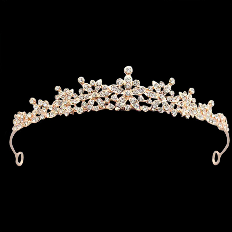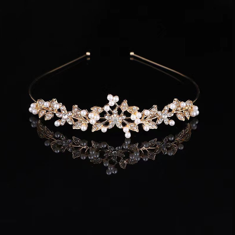 跨境欧美式新娘合金花朵珍珠皇冠发冠 结婚派对发冠配饰批发