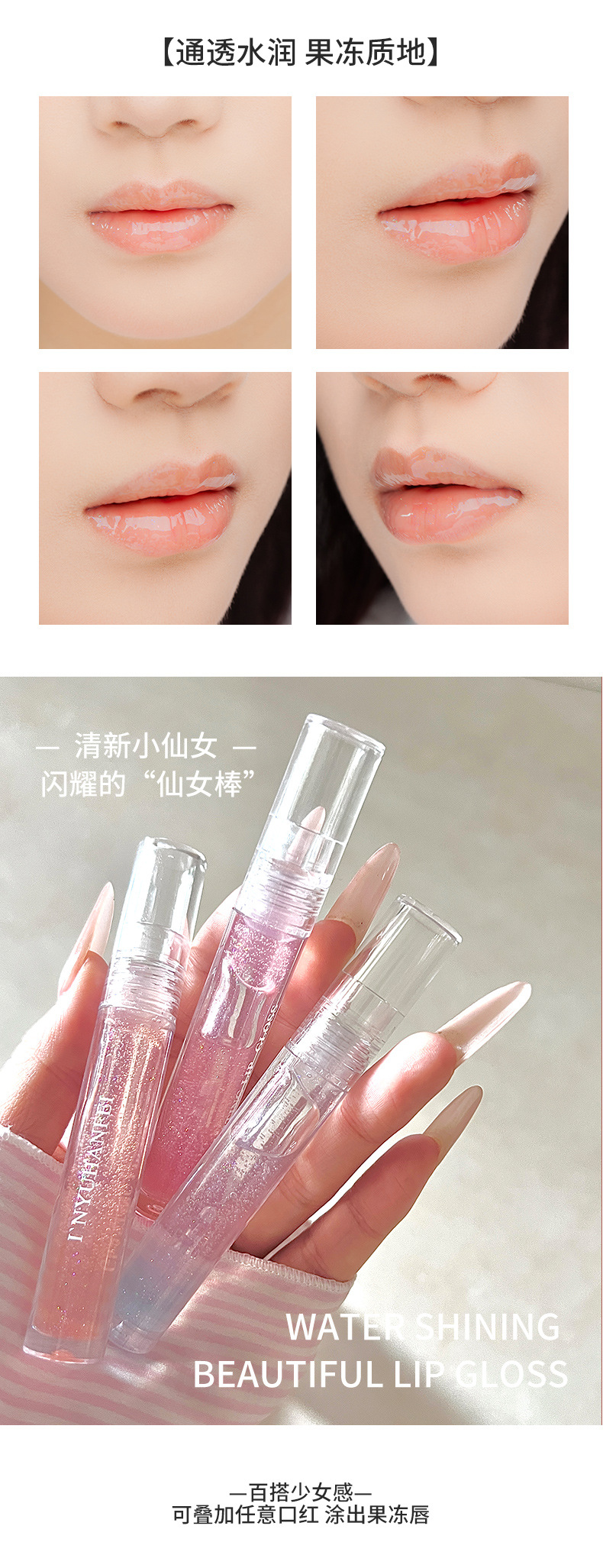影语菡妃透明水光晶闪微闪唇蜜滋润保湿唇釉镜面嘟嘟玻璃唇彩学生