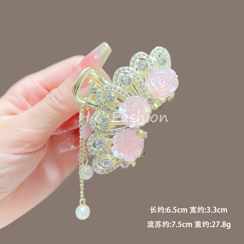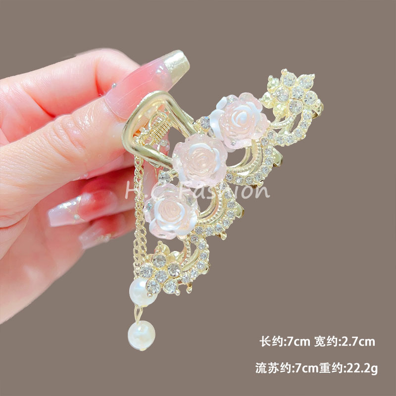 白莲花珍珠高马尾发夹女后脑勺小抓夹半扎发固定神器步摇流苏抓夹