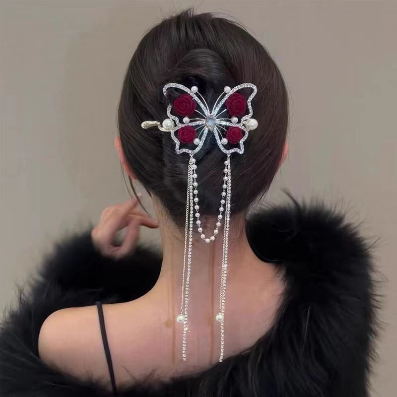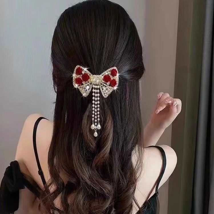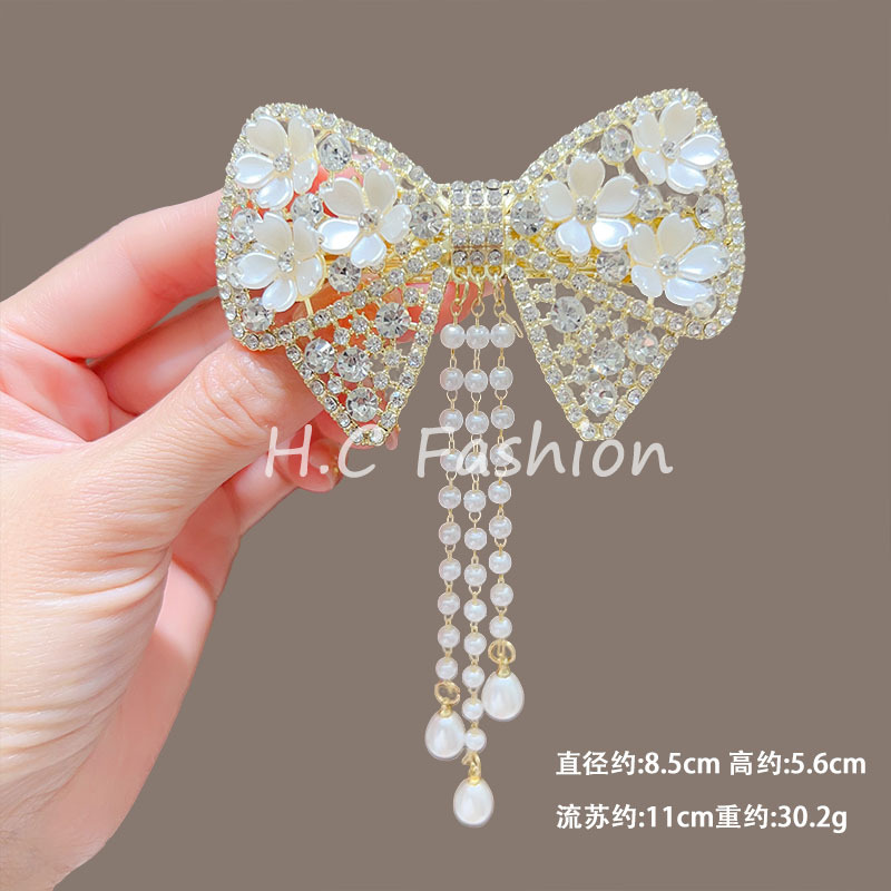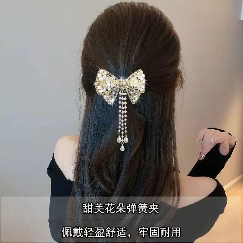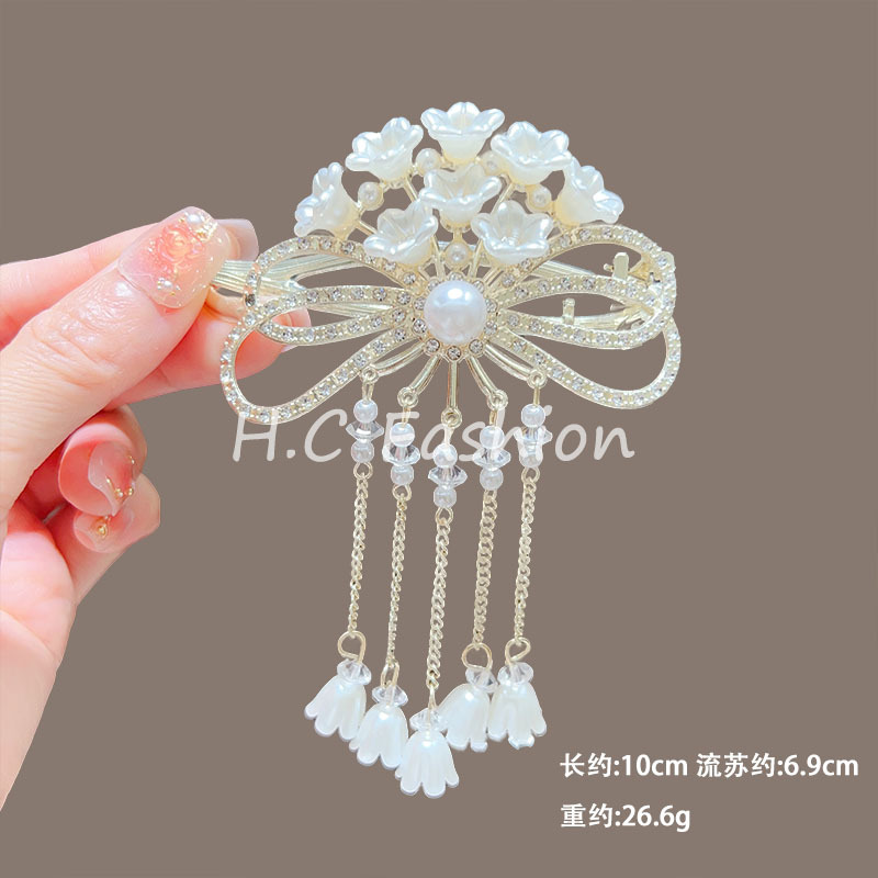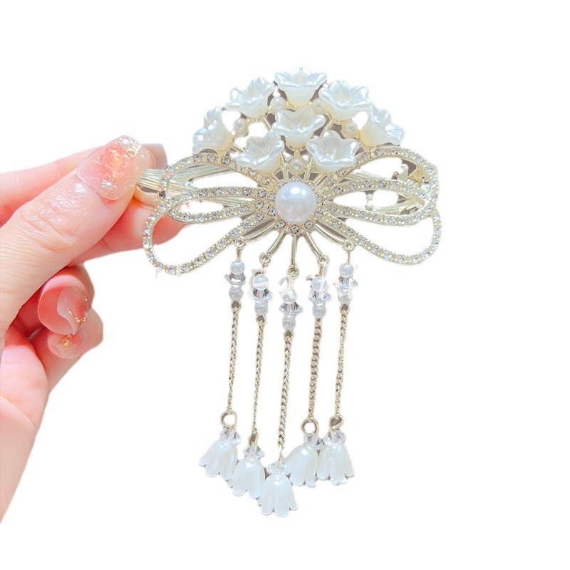 新款高级感铃兰花流苏发夹女轻奢气质扭扭夹子后脑勺弹簧夹子发卡