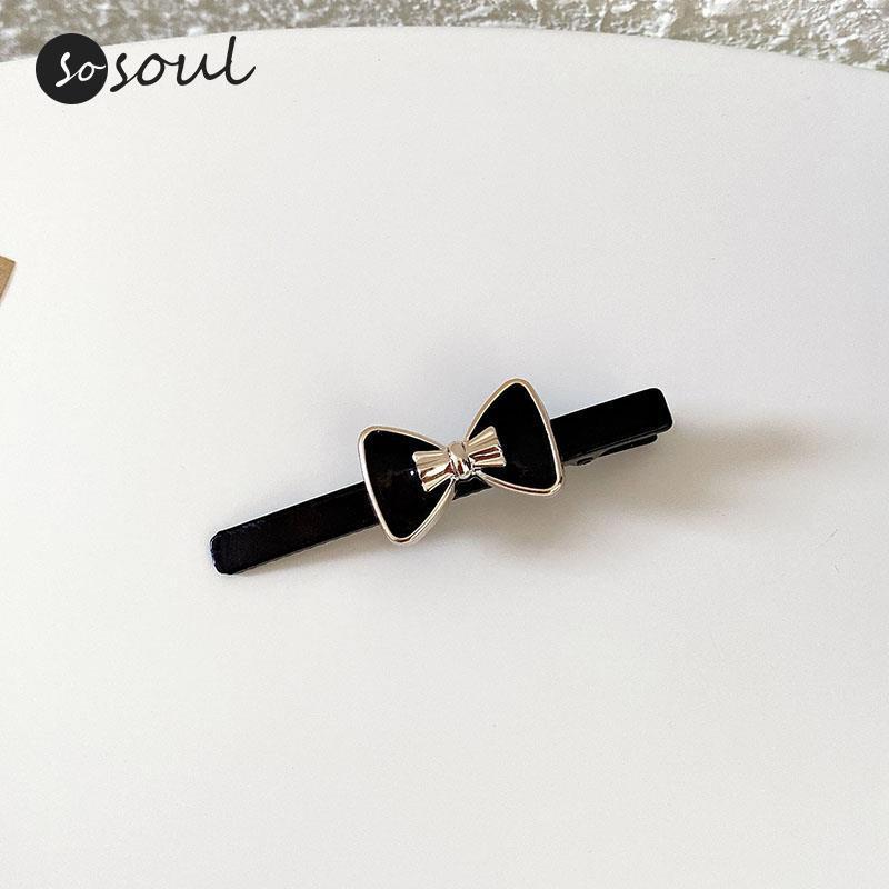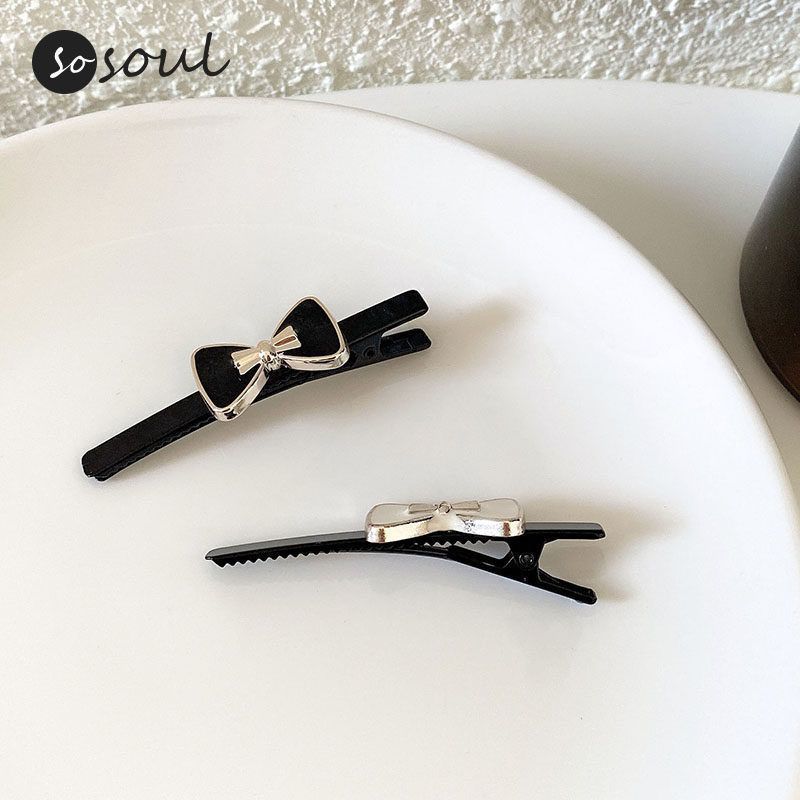 蝴蝶结鸭嘴夹小香风6cm小蝴蝶结头饰黑白色蝴蝶结碎发刘海夹批发