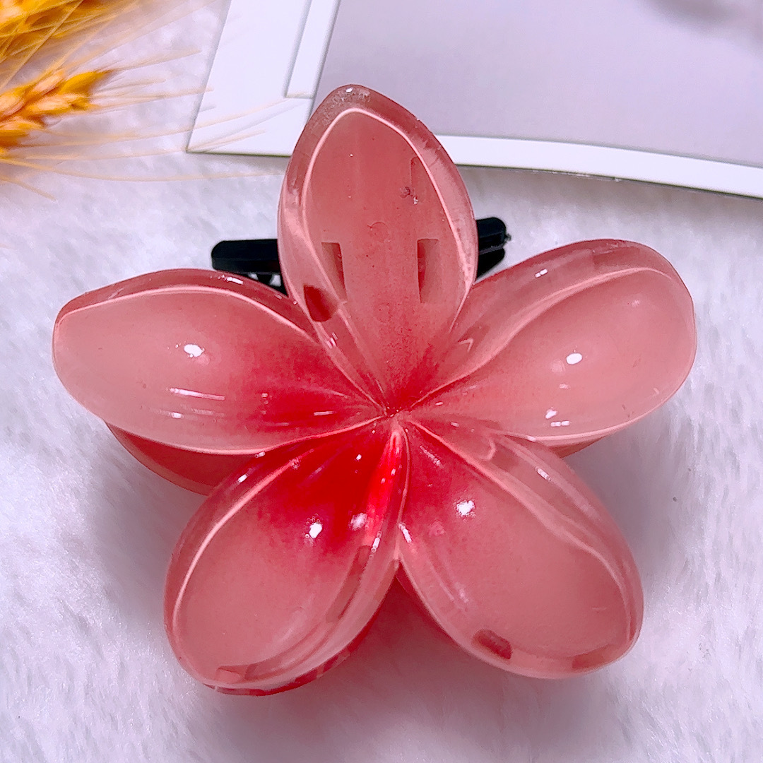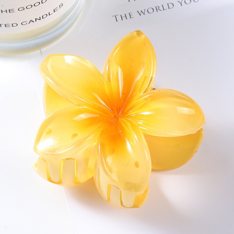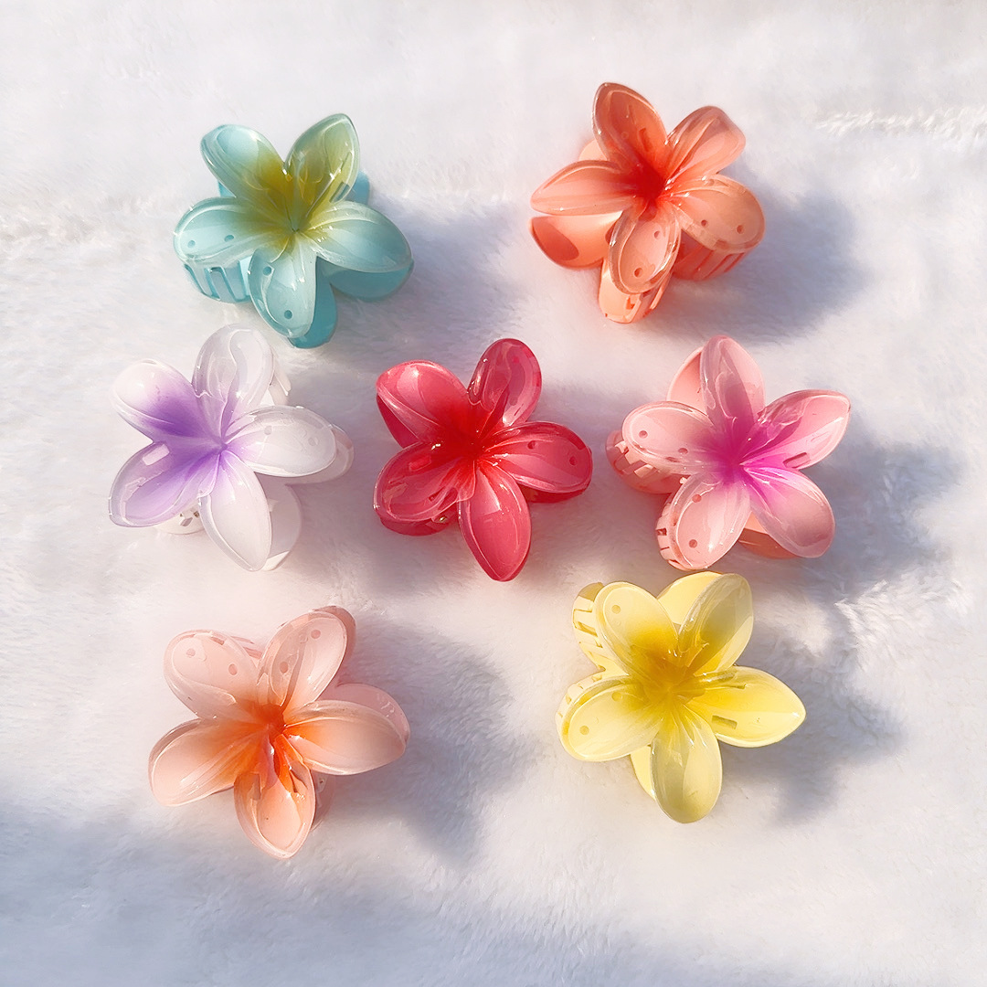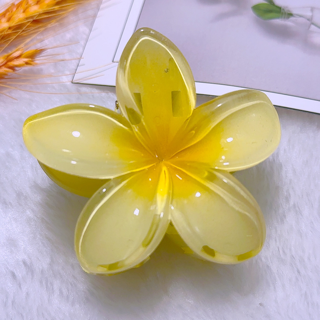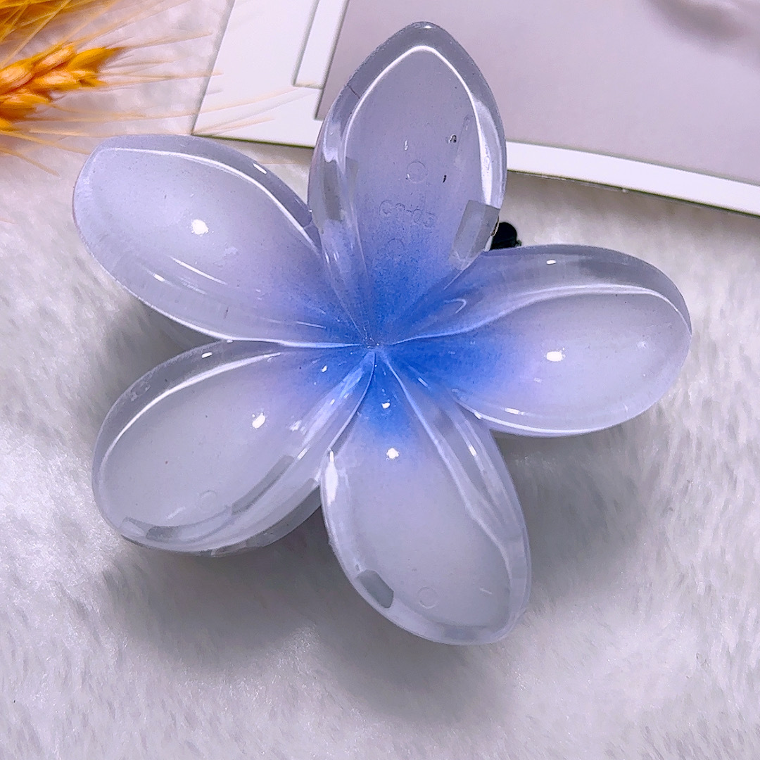 跨境热卖鸡蛋花发夹透明渐变花朵发夹后脑勺半扎发抓夹气质鲨鱼夹