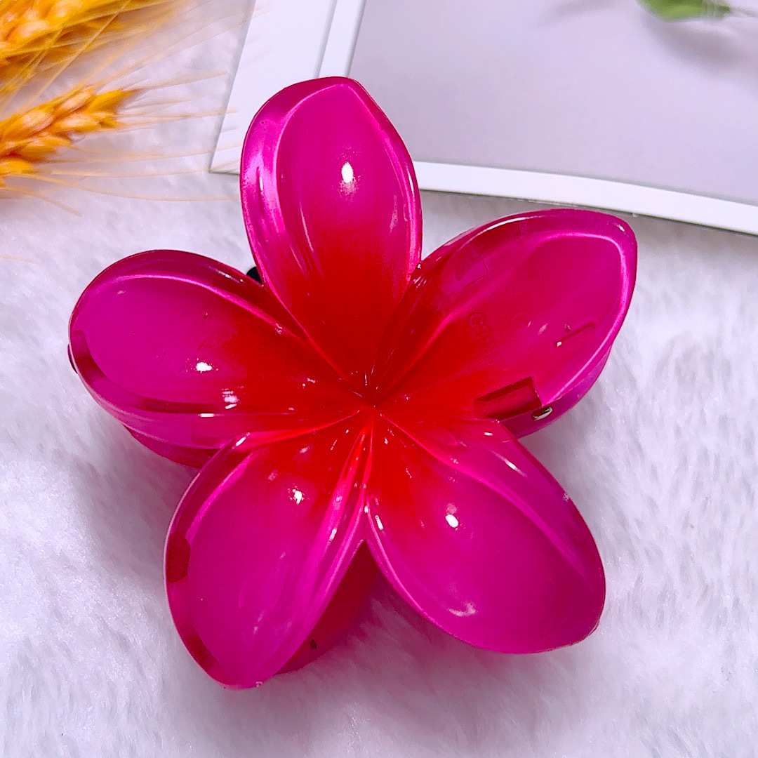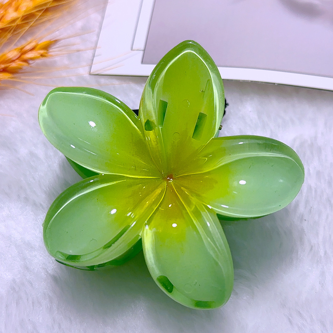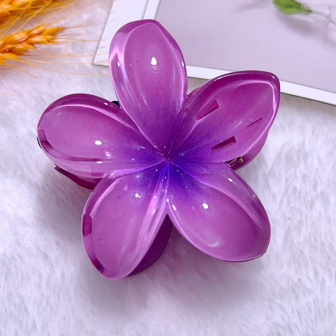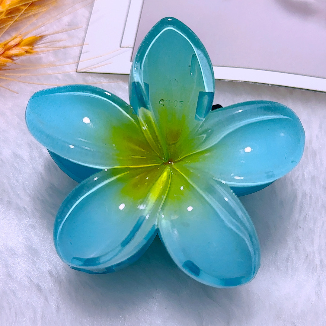 跨境热卖鸡蛋花发夹透明渐变花朵发夹后脑勺半扎发抓夹气质鲨鱼夹
