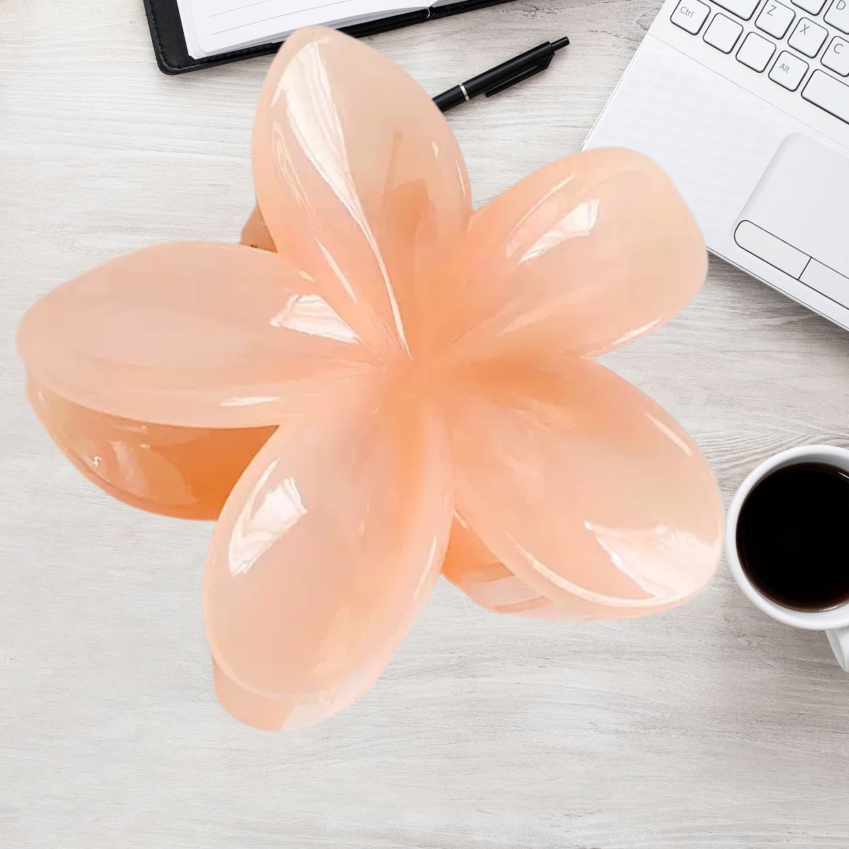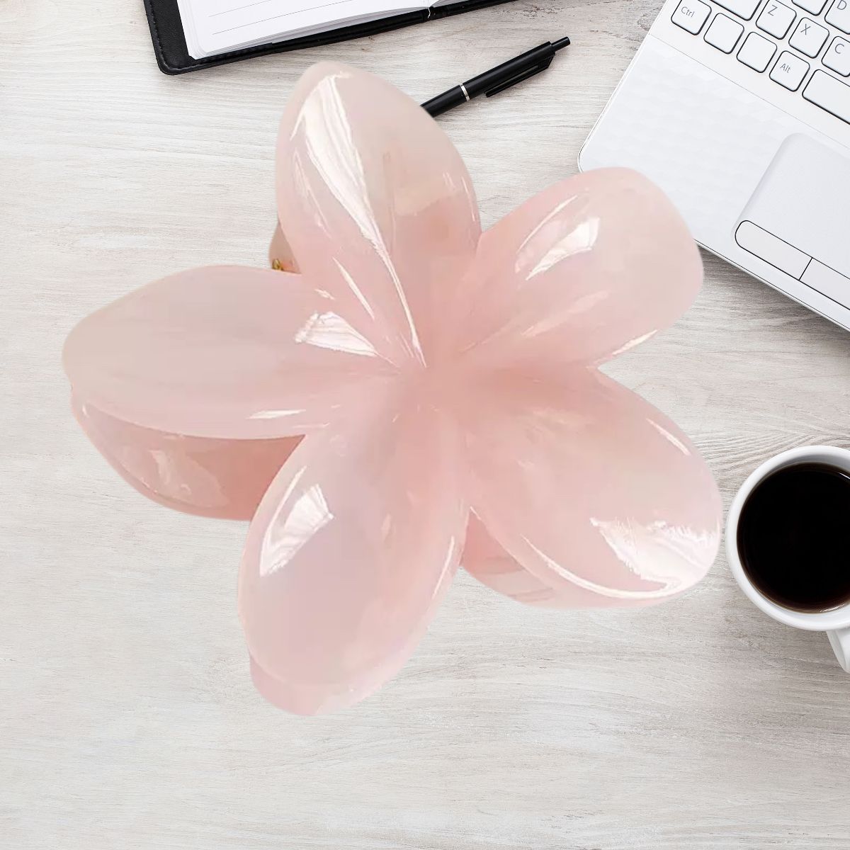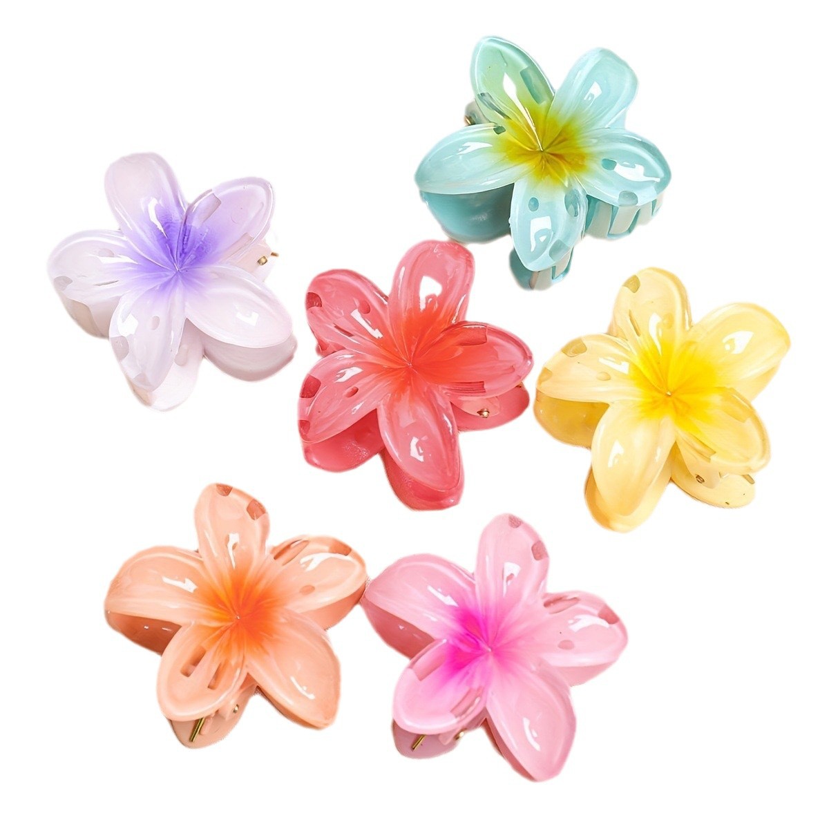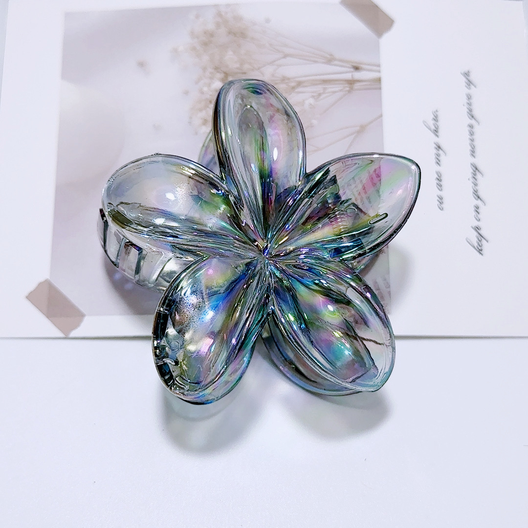 跨境热卖鸡蛋花发夹透明渐变花朵发夹后脑勺半扎发抓夹气质鲨鱼夹