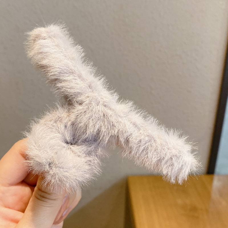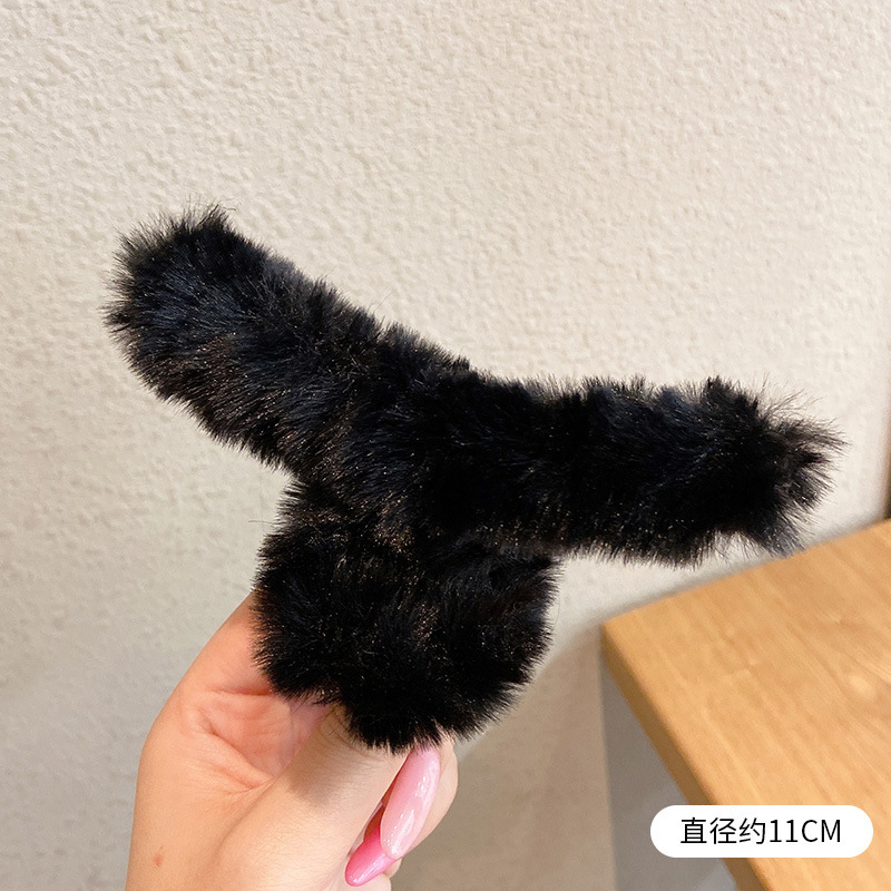 秋冬大号鲨鱼夹发卡女毛绒抓夹高级感气质后脑勺发夹毛毛夹子头饰