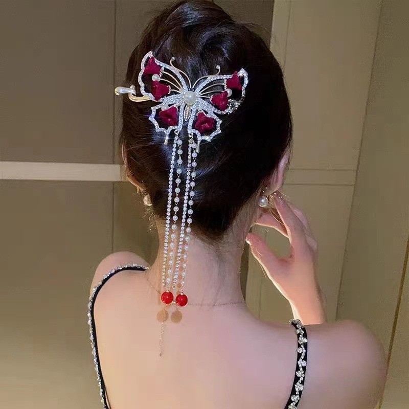 新款铃兰花流苏扭扭发夹后脑勺高颜值网红一字扣超仙古风新娘头饰