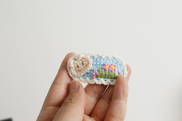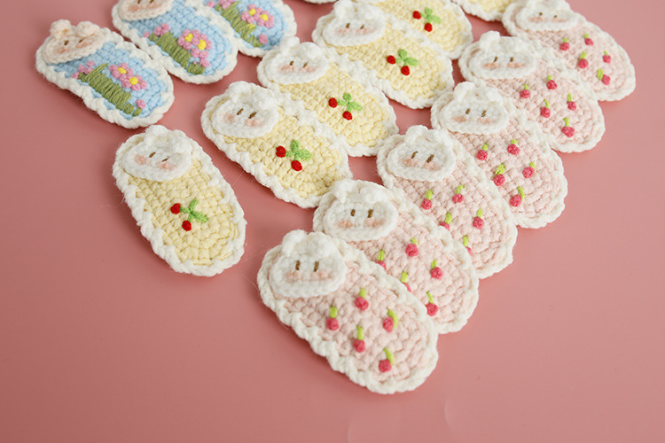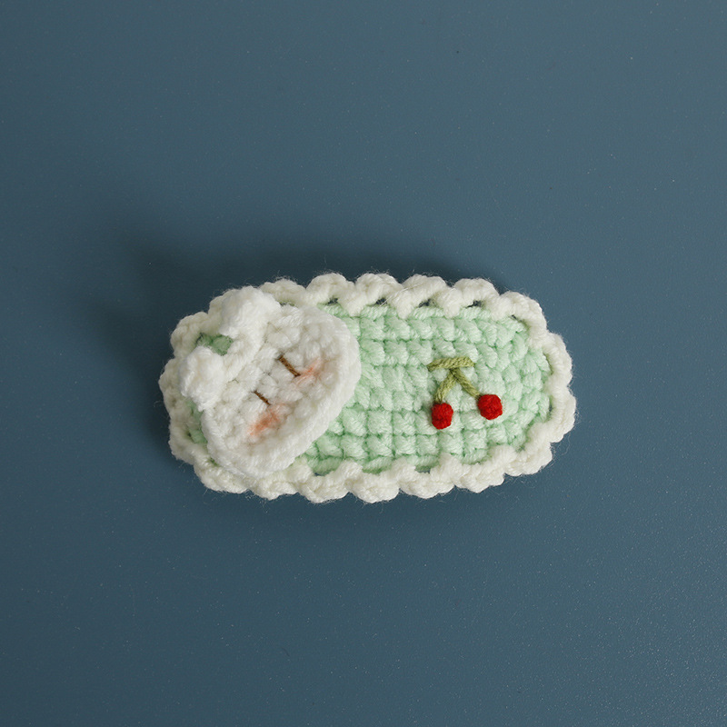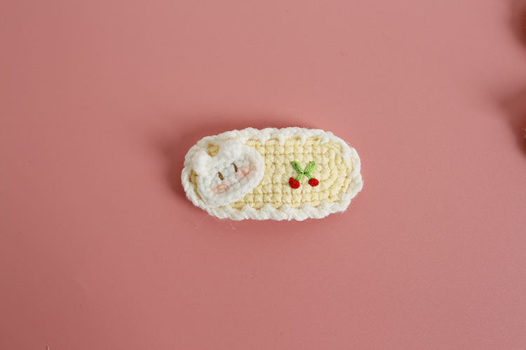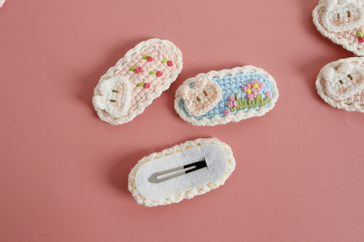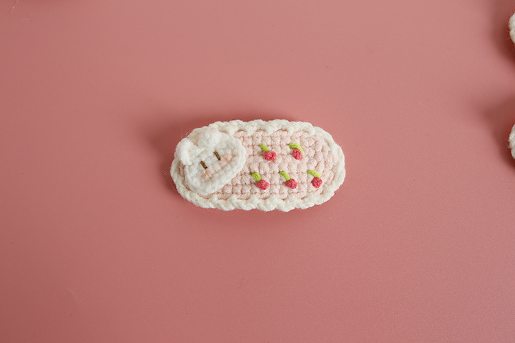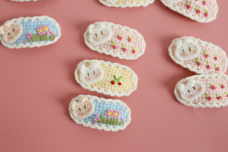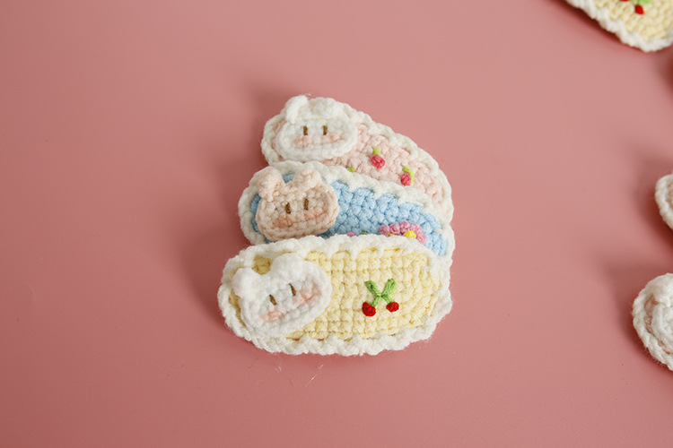 甜美手工编织兔头发卡 萌四毛线钩织绣花bb夹 手作头饰成品现货