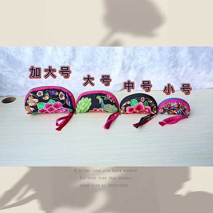 新款民族风钥匙包手拎包刺绣花包手拎包手挽水饺形小包便捷批发
