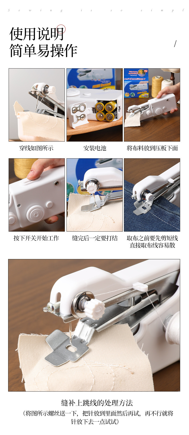 手持缝纫机跨境便携式迷你家用多功能电动小型手握式新款缝纫机