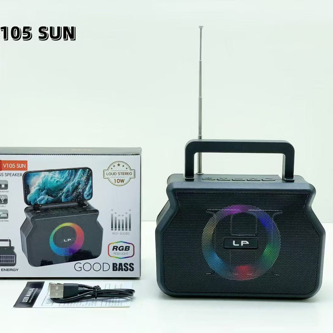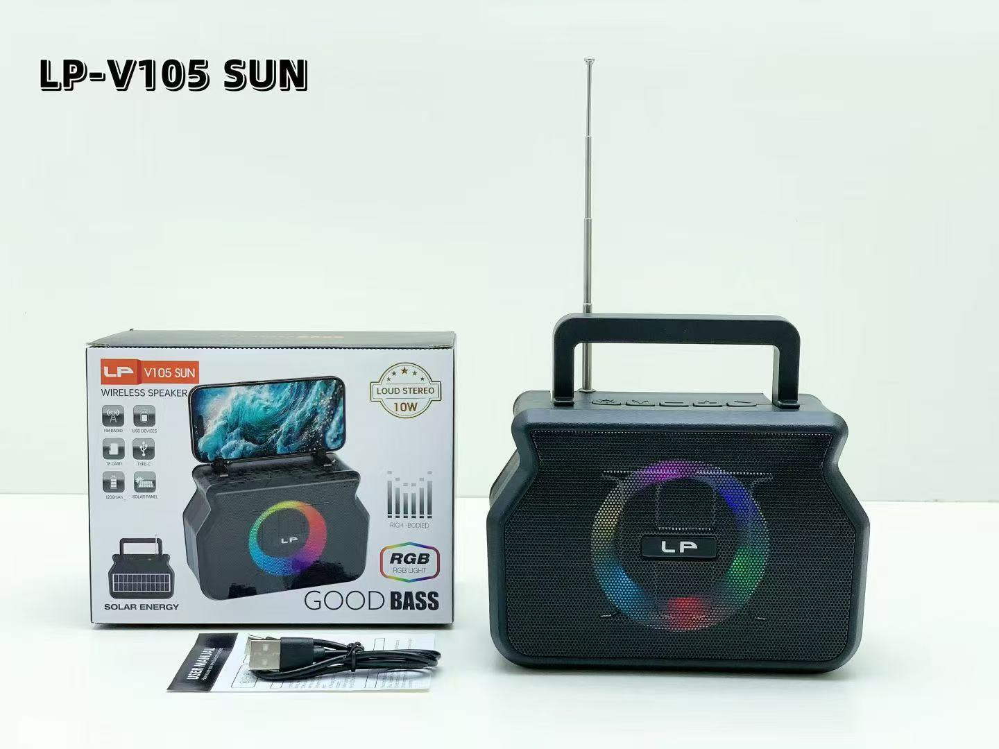 LP-V105SUN 跨境新款手提太阳能蓝牙音箱低音炮便携式RGB灯收音机