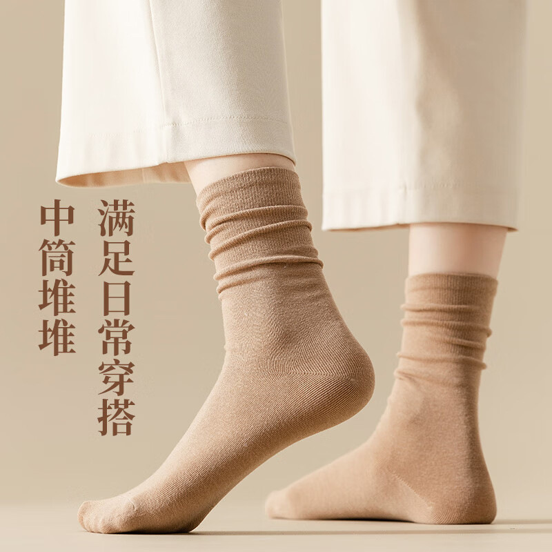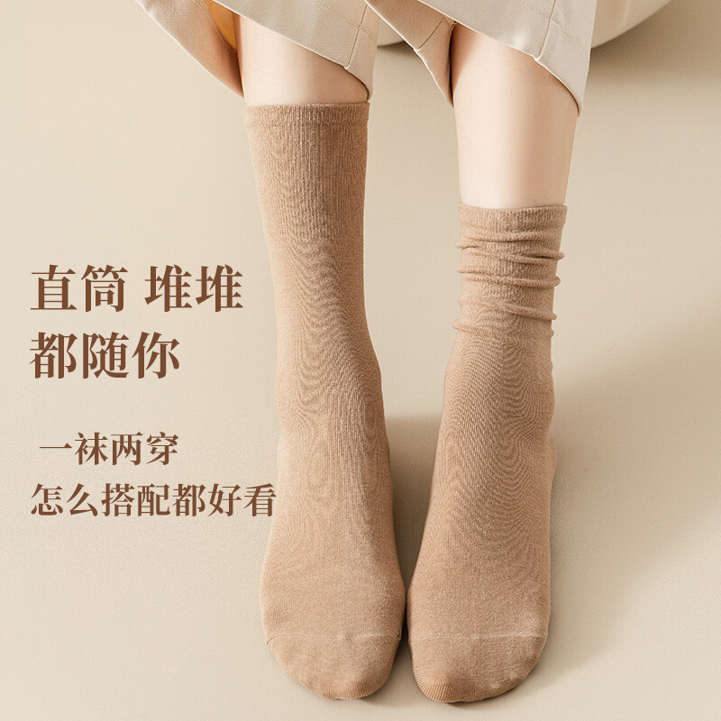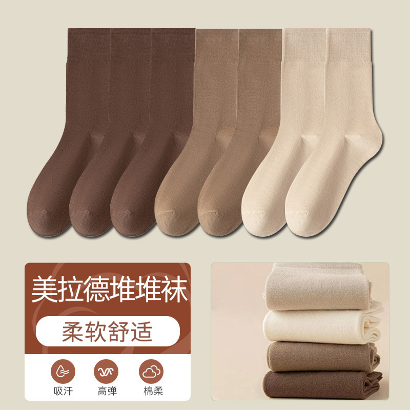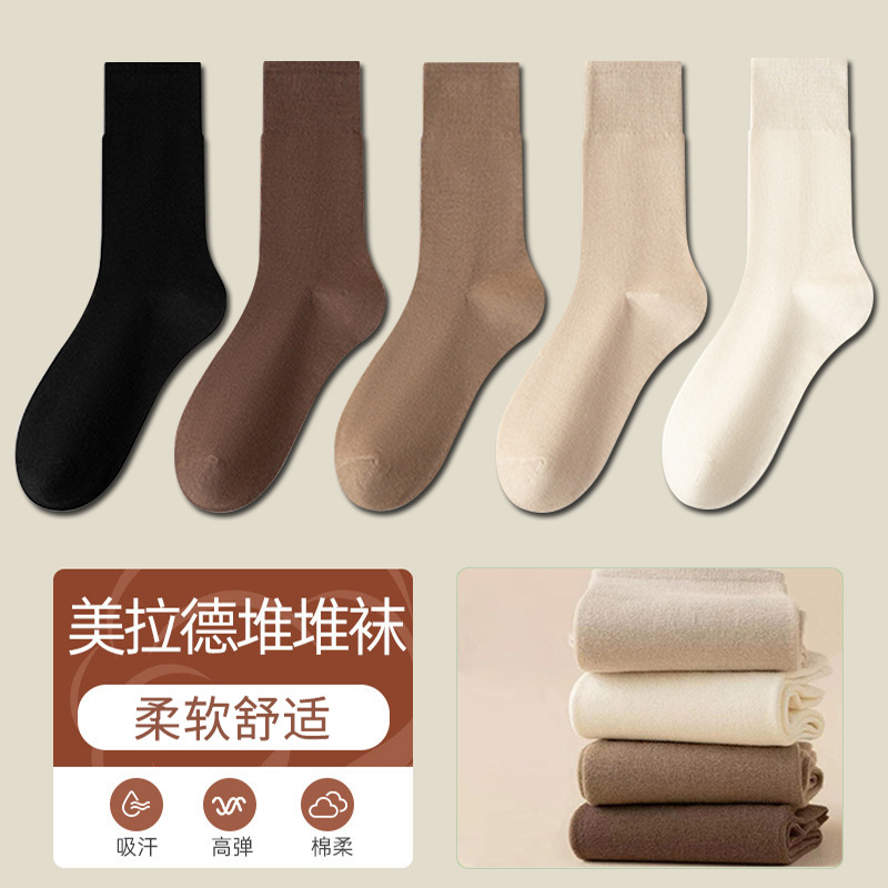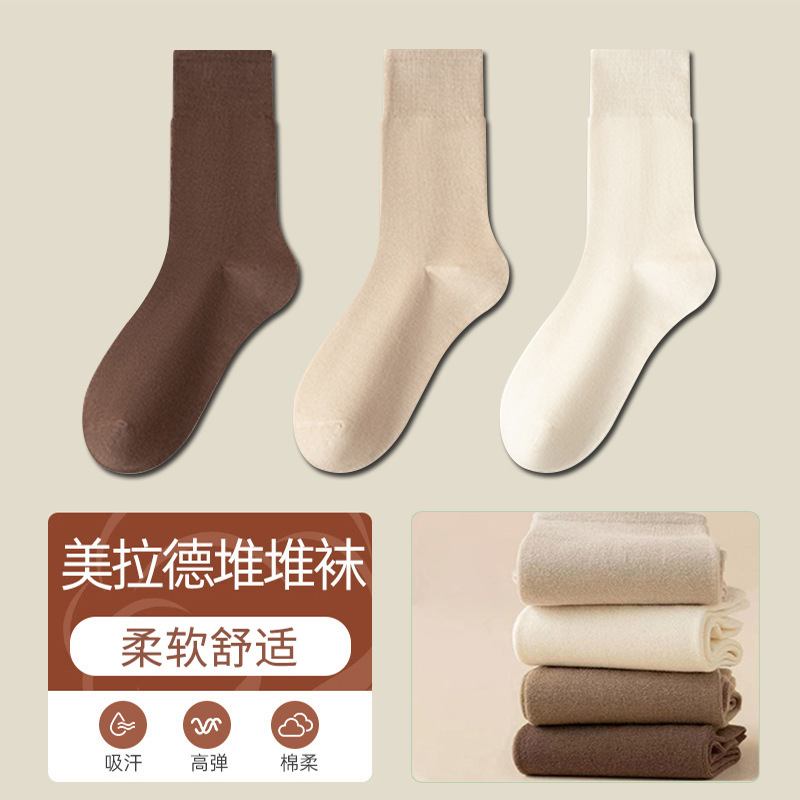 秋冬袜子女款美拉德中筒堆堆袜长筒袜松口月子袜女袜百搭纯色诸暨