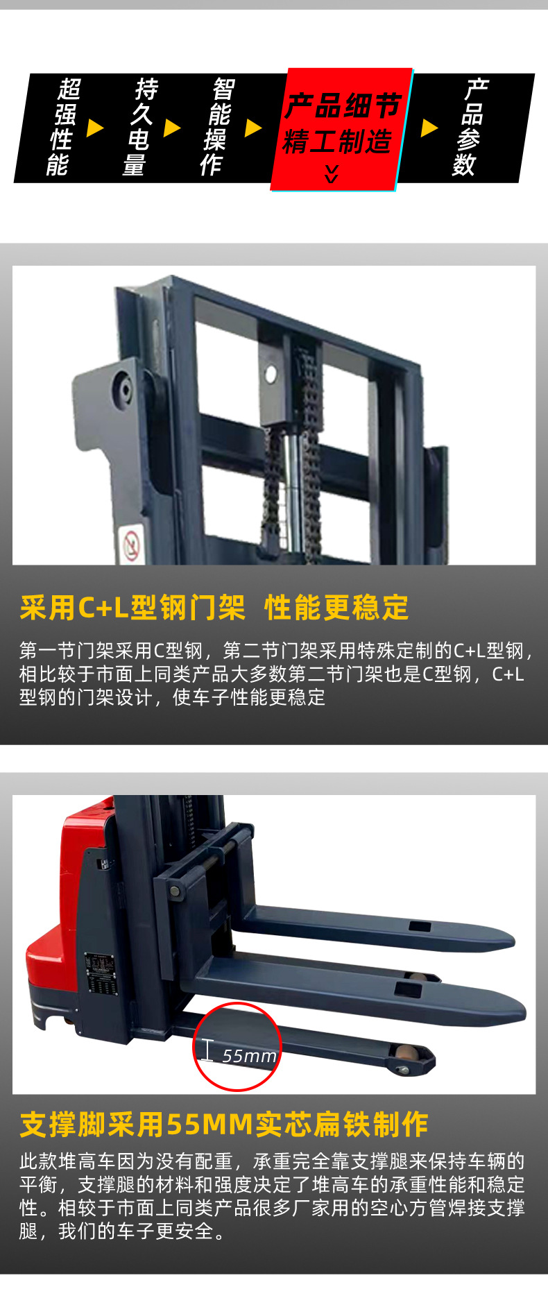 科力小型自动升降叉车站立式电动叉车2吨卸货推高堆垛电动堆高车