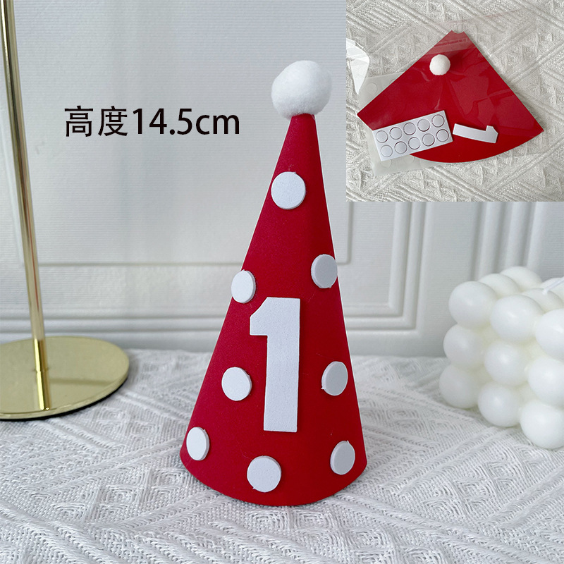 网红生日帽蛋糕装饰红色帽子1周岁宝宝生日蛋糕插牌插件插旗摆件