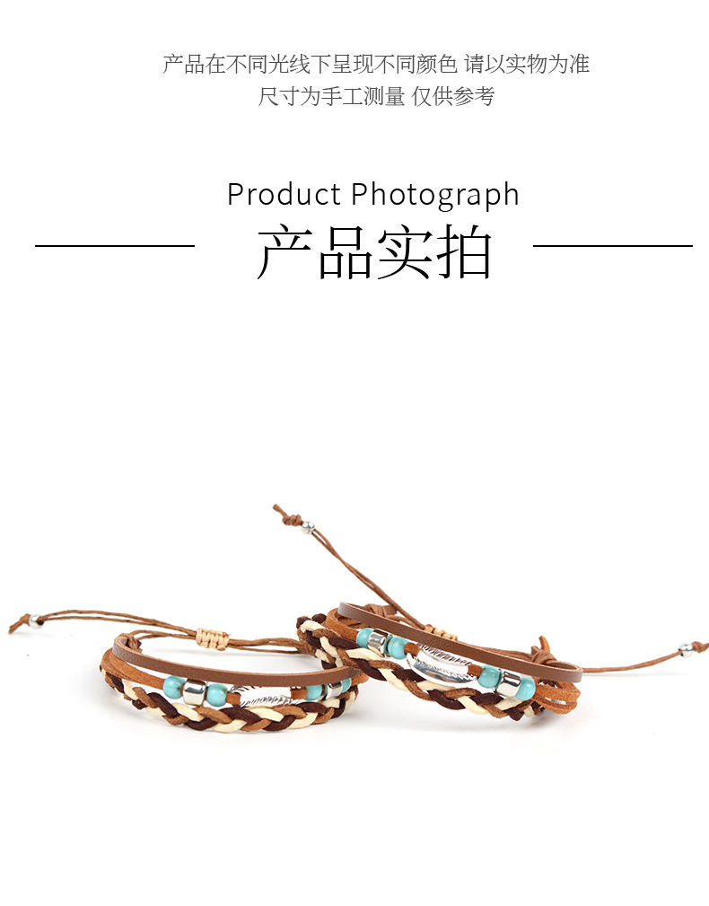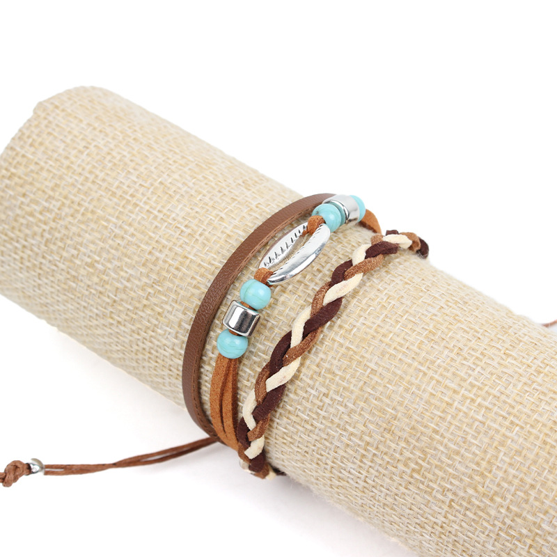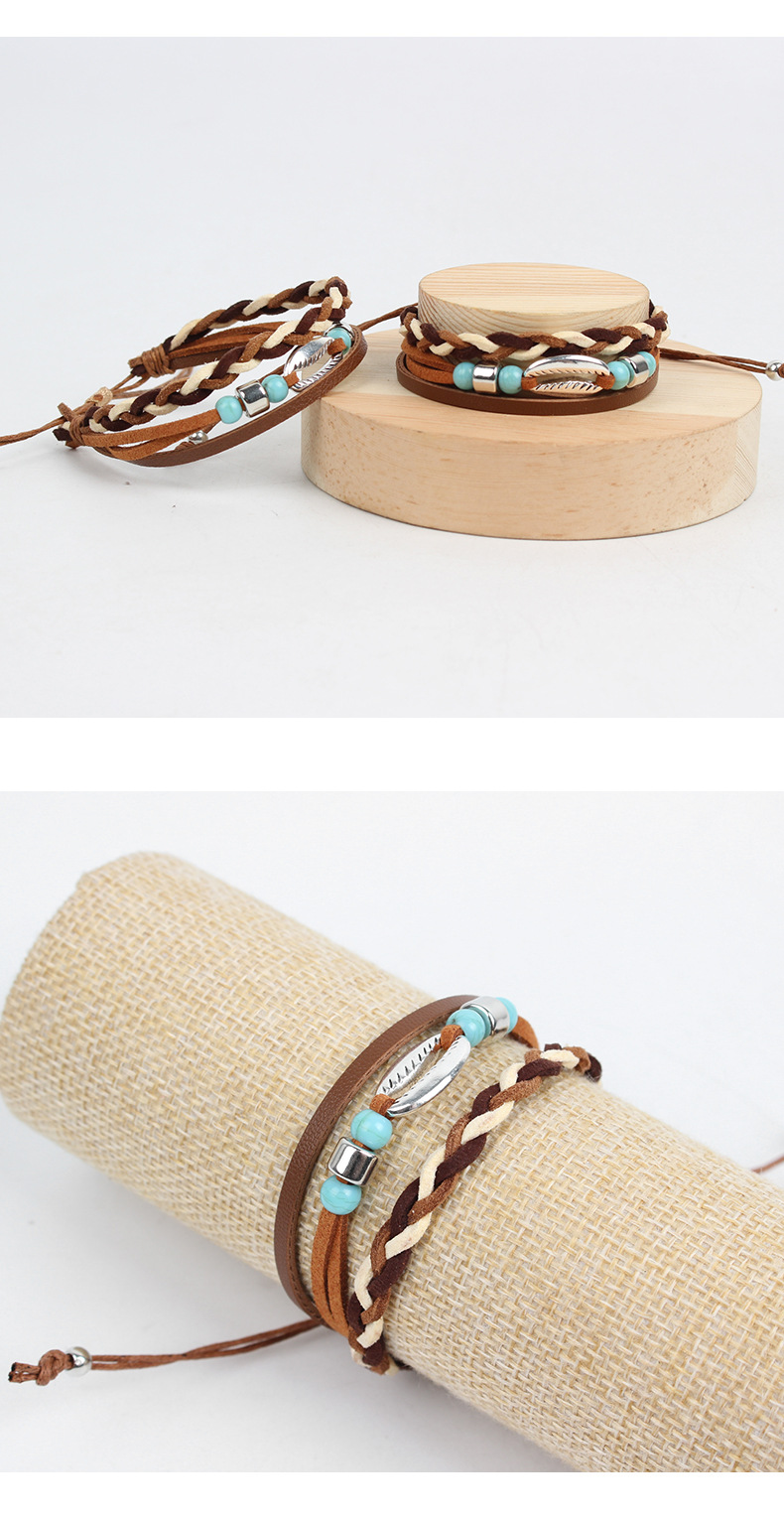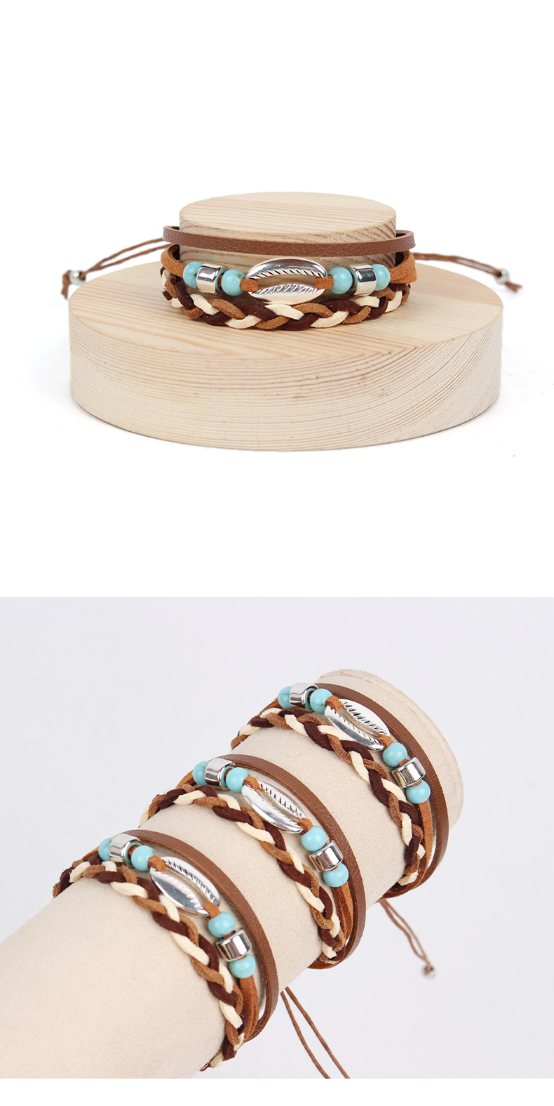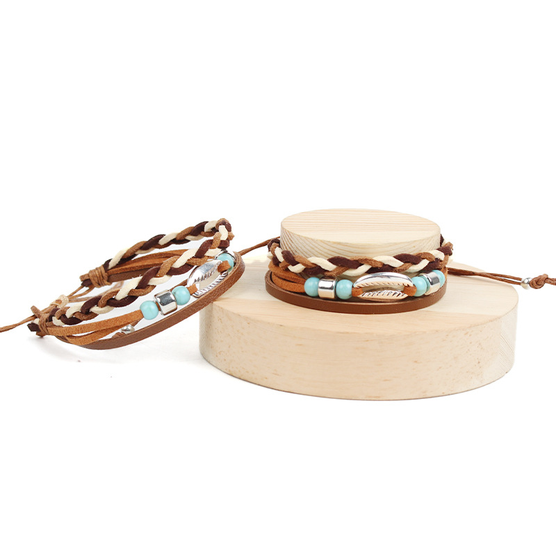 跨境热卖手工编织贝壳手链原创多层复古风皮革手链情侣款手串批发