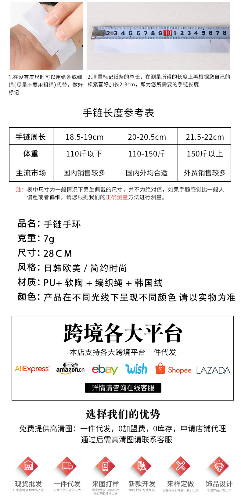 跨境热卖波西米亚皮绳手链原创复古PU可调节情侣手环首饰饰品批发