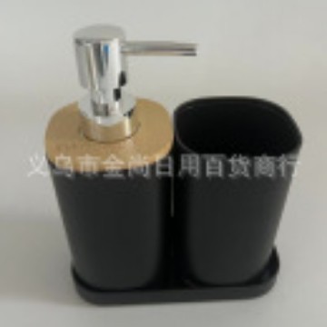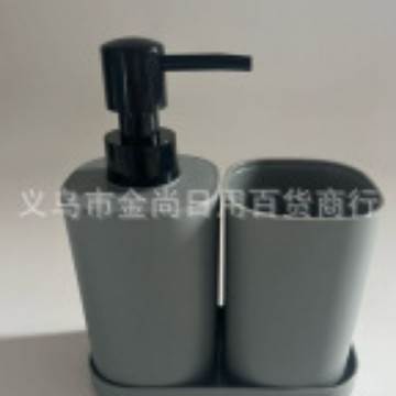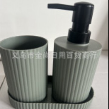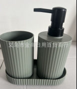 竖条纹卫浴套塑料卫浴组合套装酒店洗浴用品漱口杯液瓶底托套装