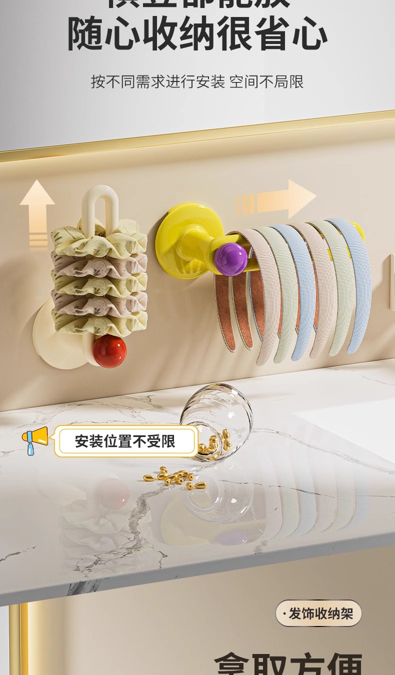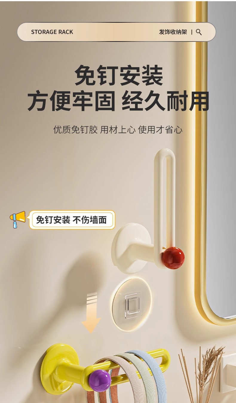 发圈头绳收纳架卫生间发饰皮筋发箍首饰品壁挂神器多巴胺挂钩粘钩