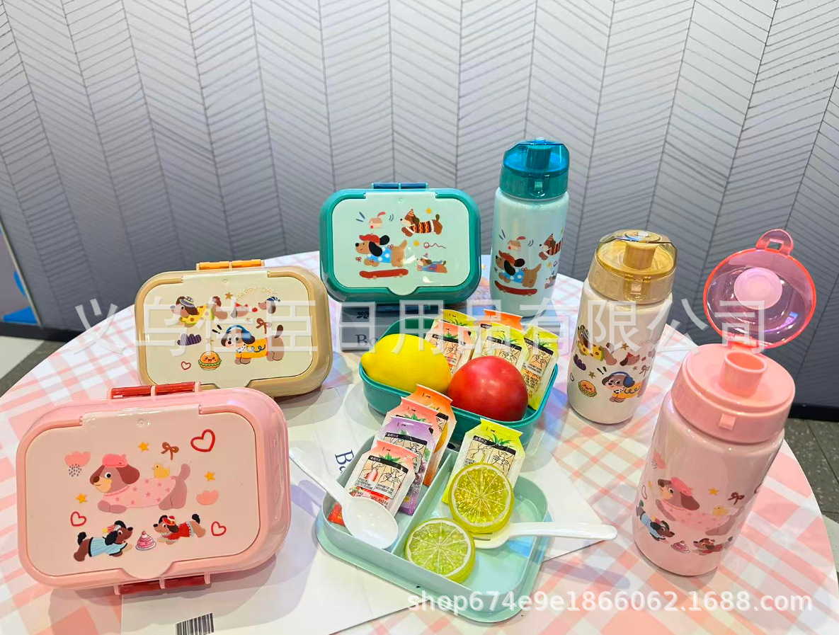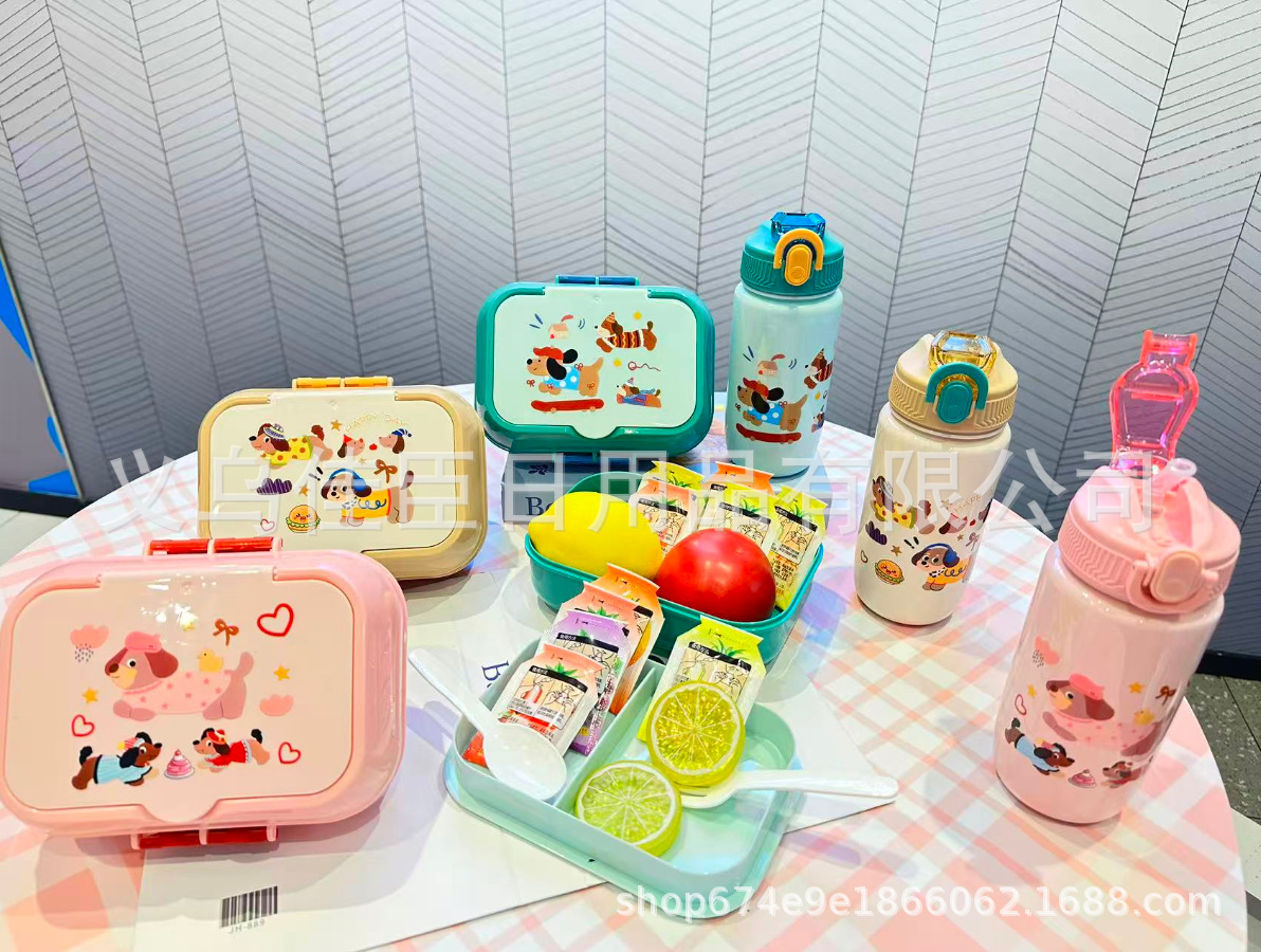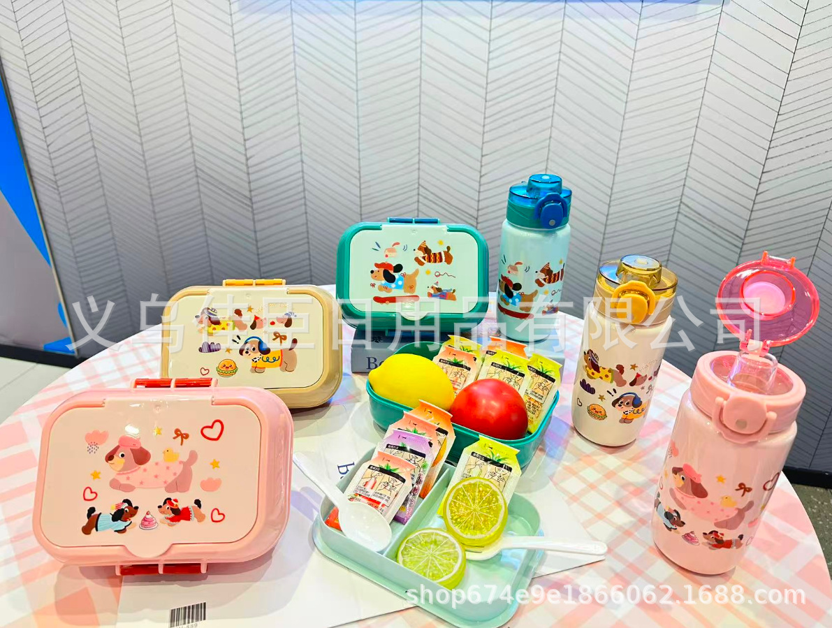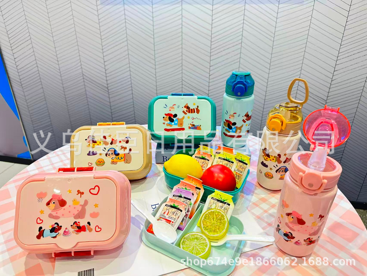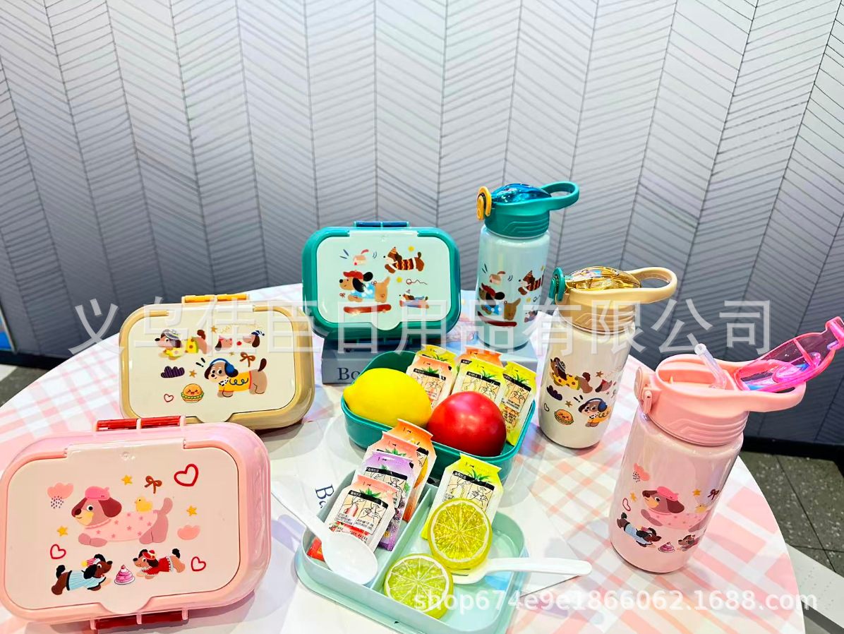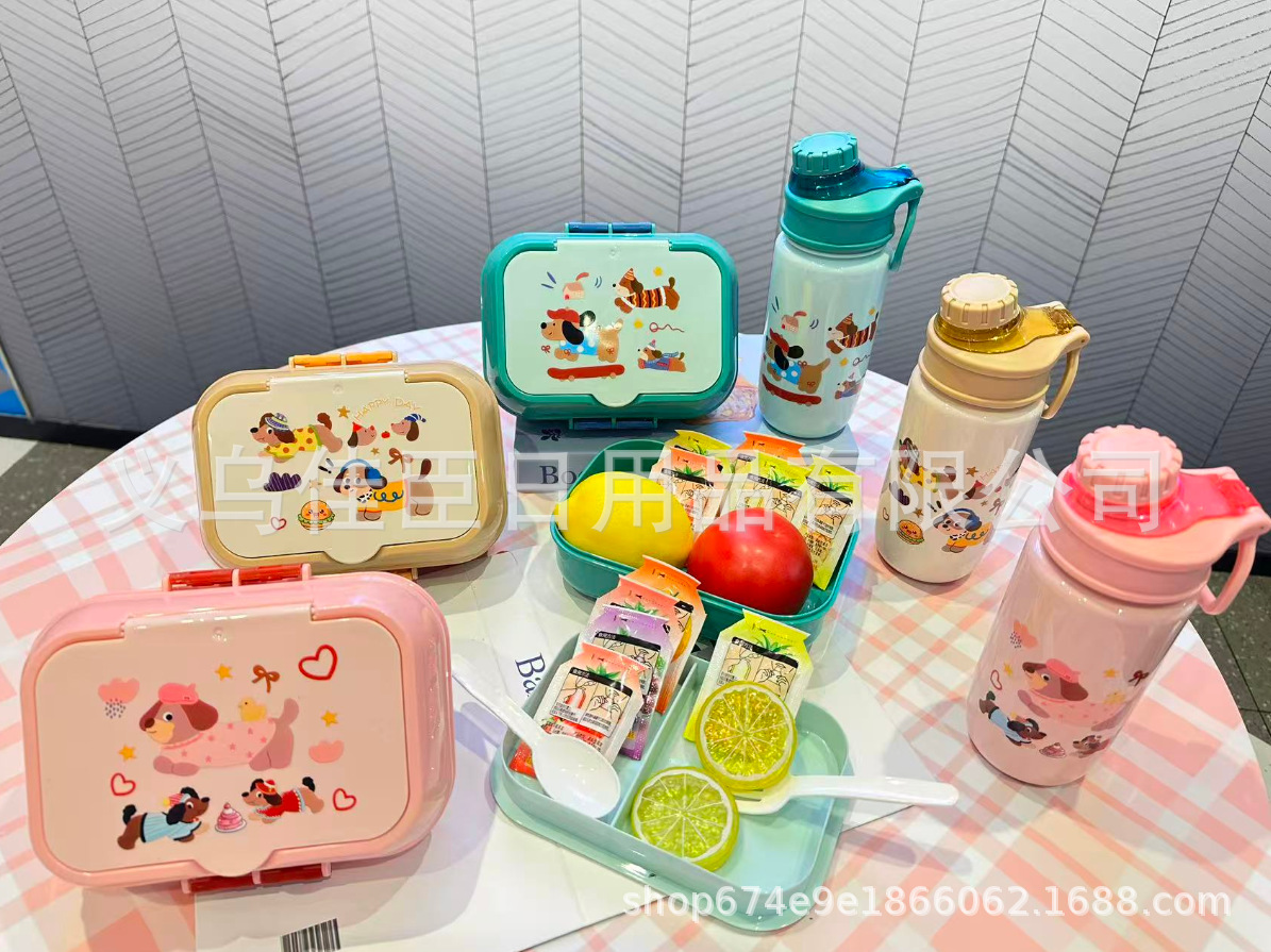学生卡通便当盒水壶饭盒套装腊肠狗造型带餐具饭盒野餐跨境网红款