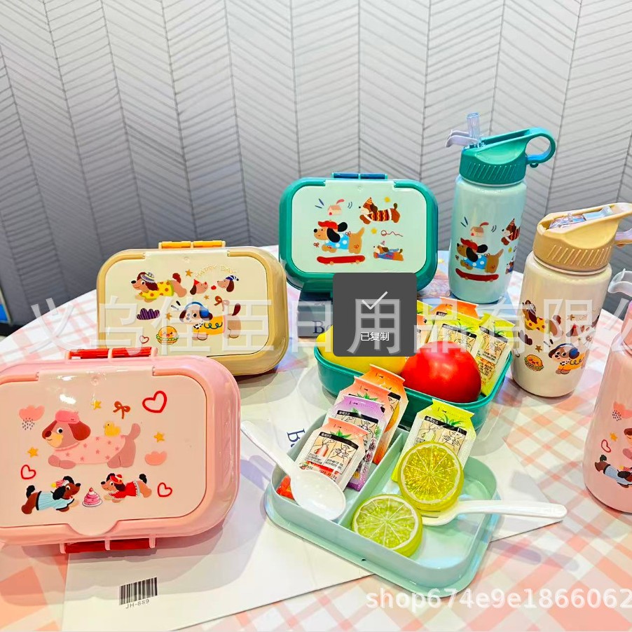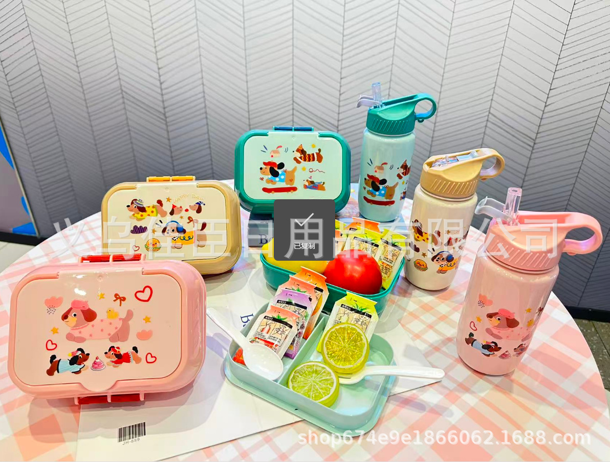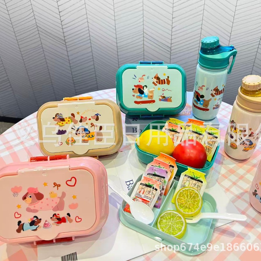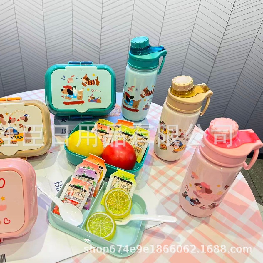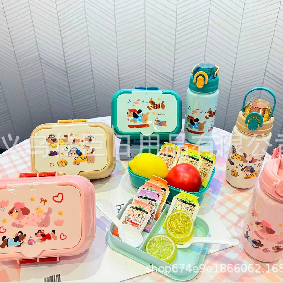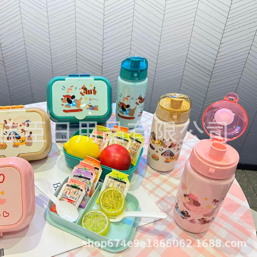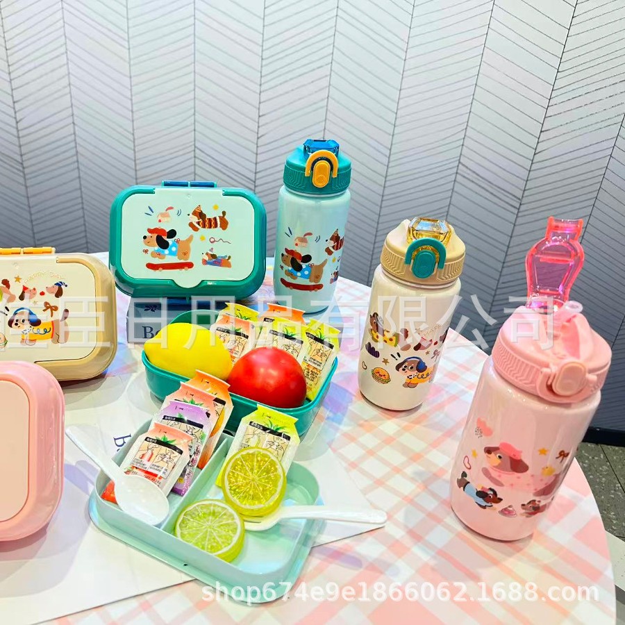 学生卡通便当盒水壶饭盒套装腊肠狗造型带餐具饭盒野餐跨境网红款