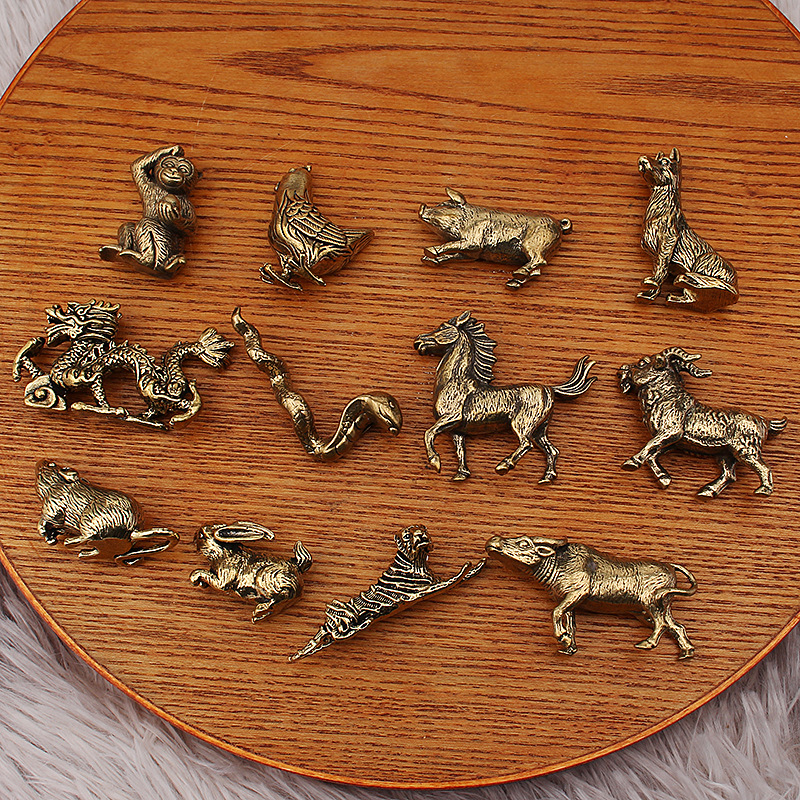黄铜十二生肖鼠牛虎兔龙蛇马羊猴鸡狗猪动物装饰品金属摆件工艺品