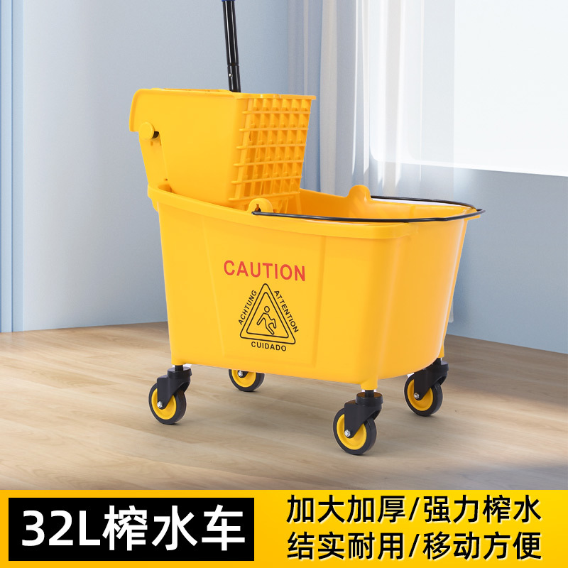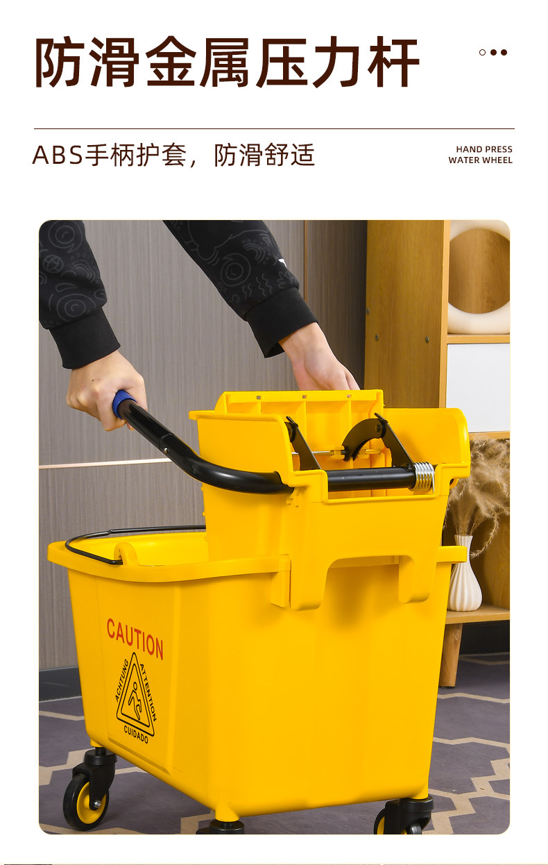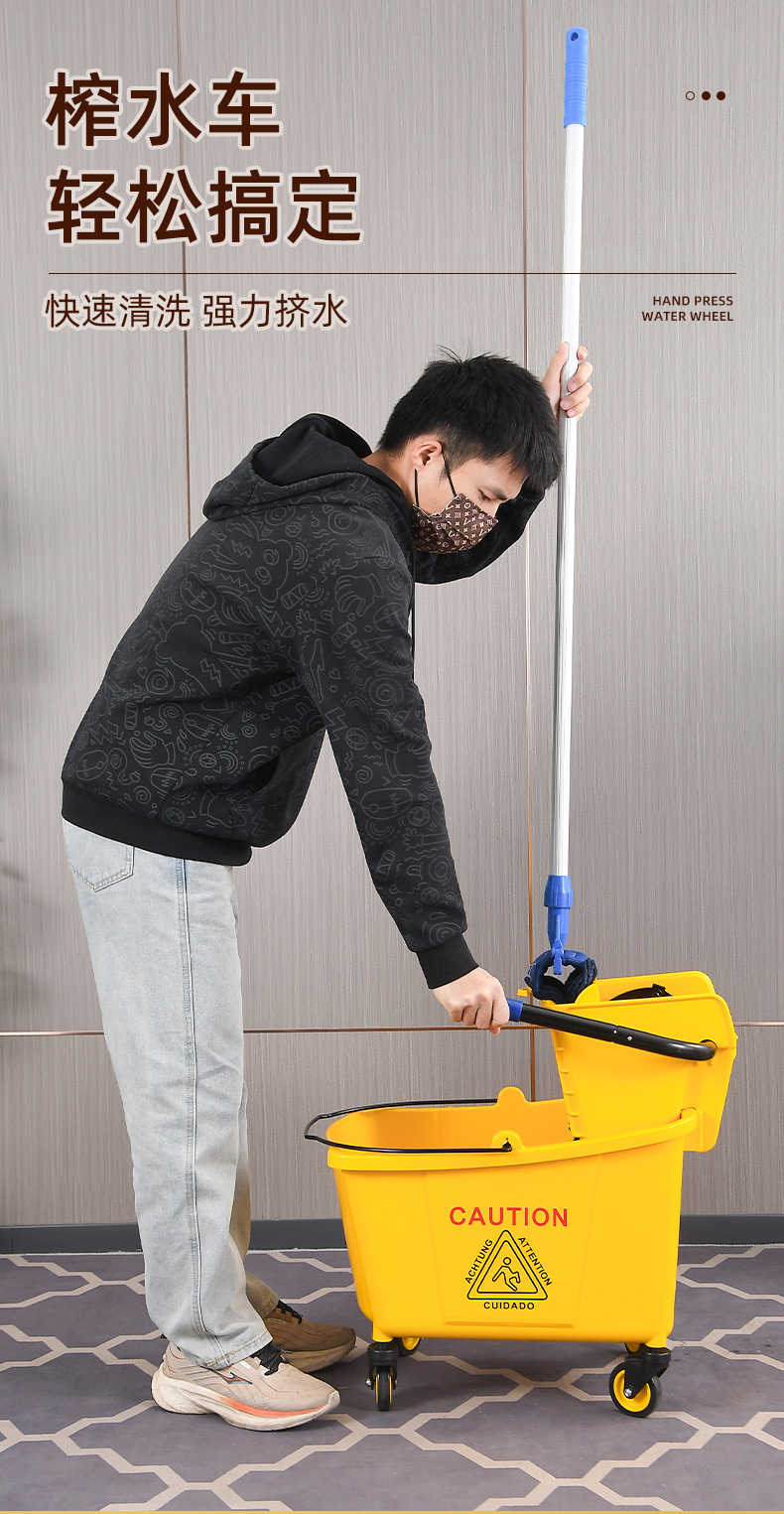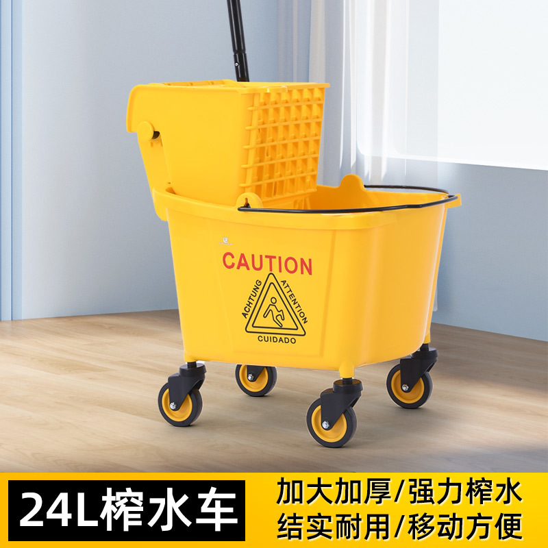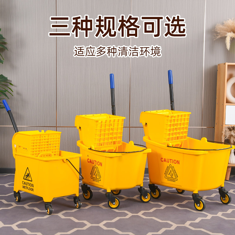 学校酒店商场清洁便捷柞水车塑料加厚单桶拖把桶手压式清洁挤水车