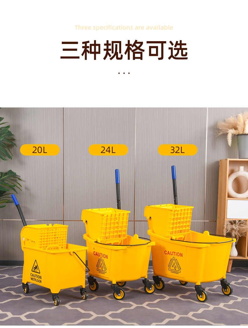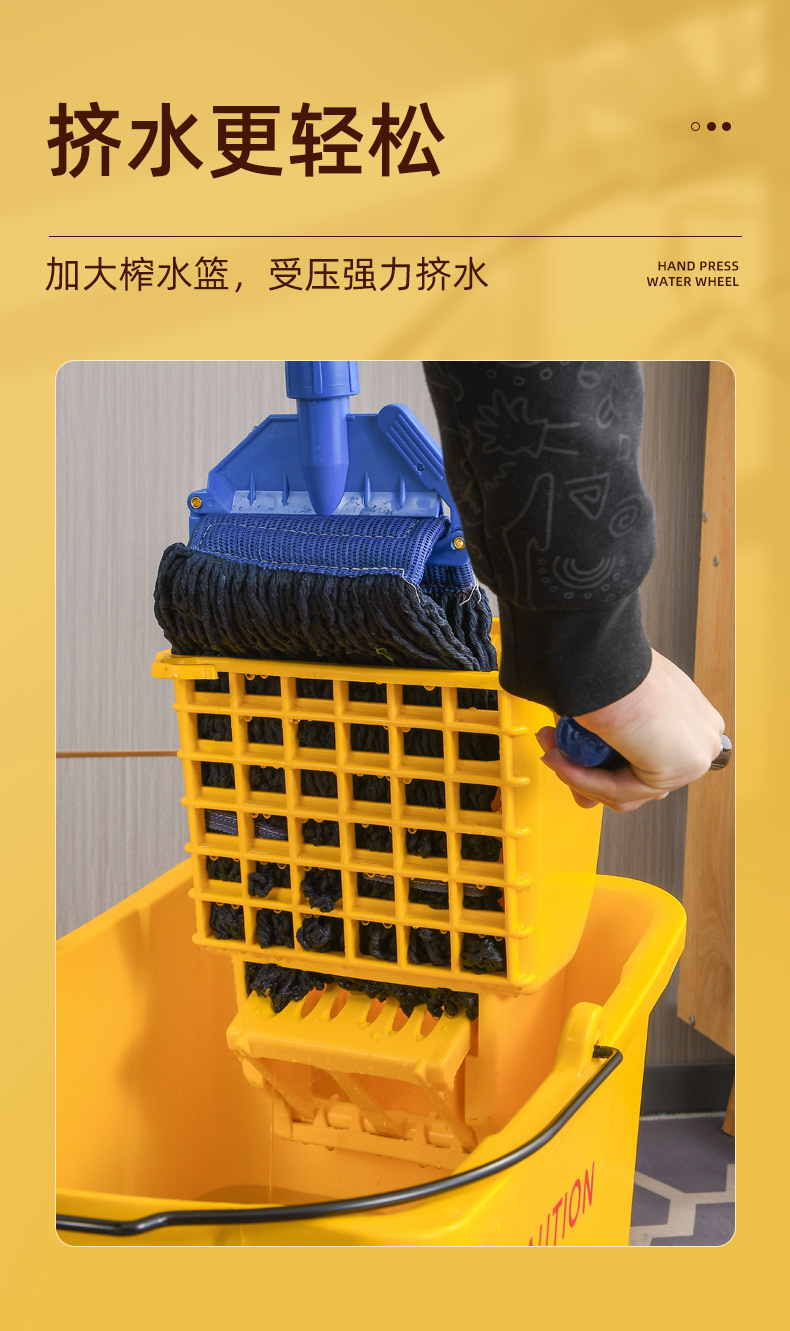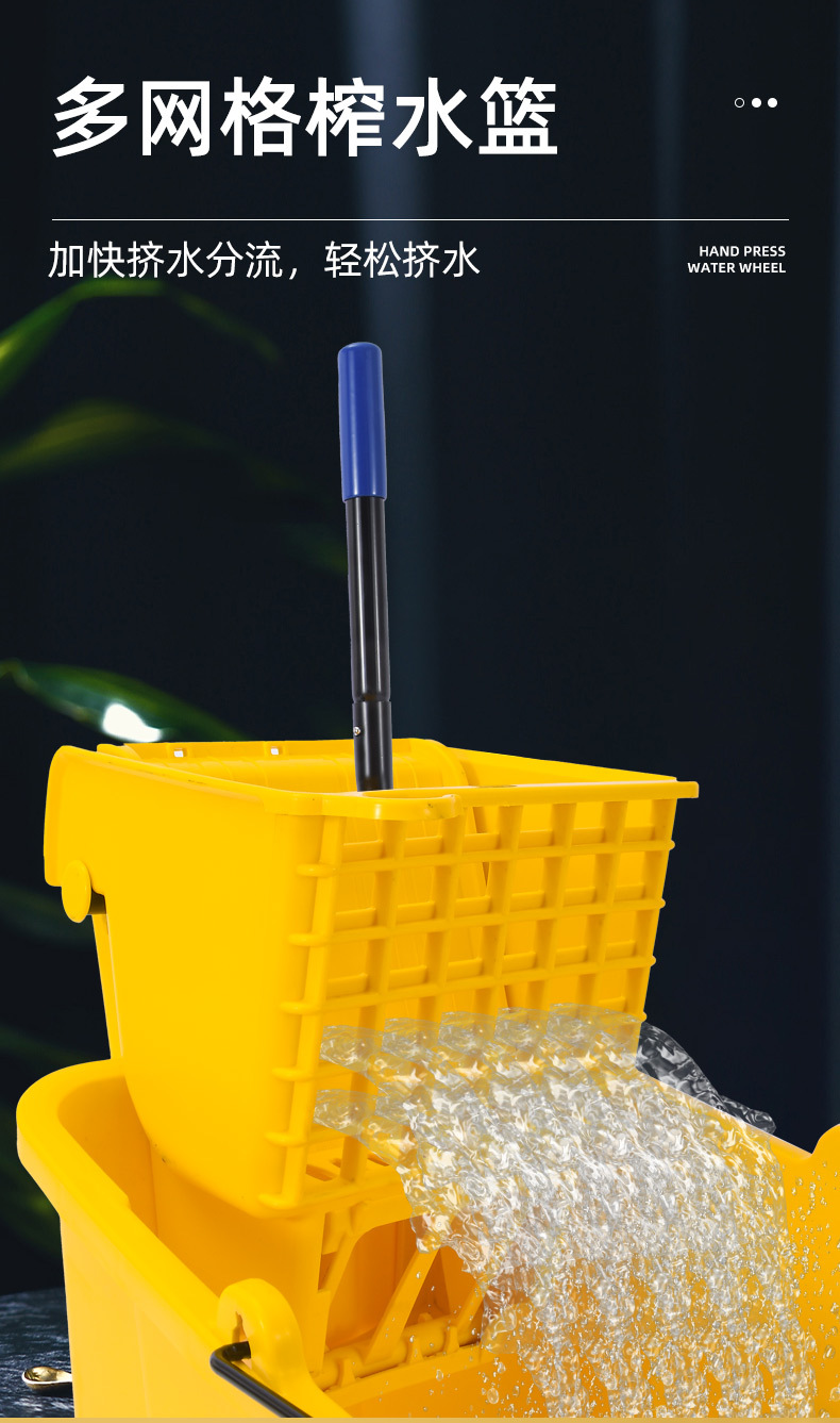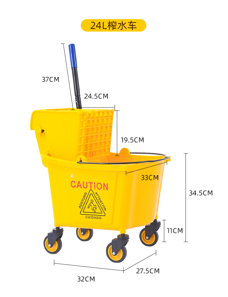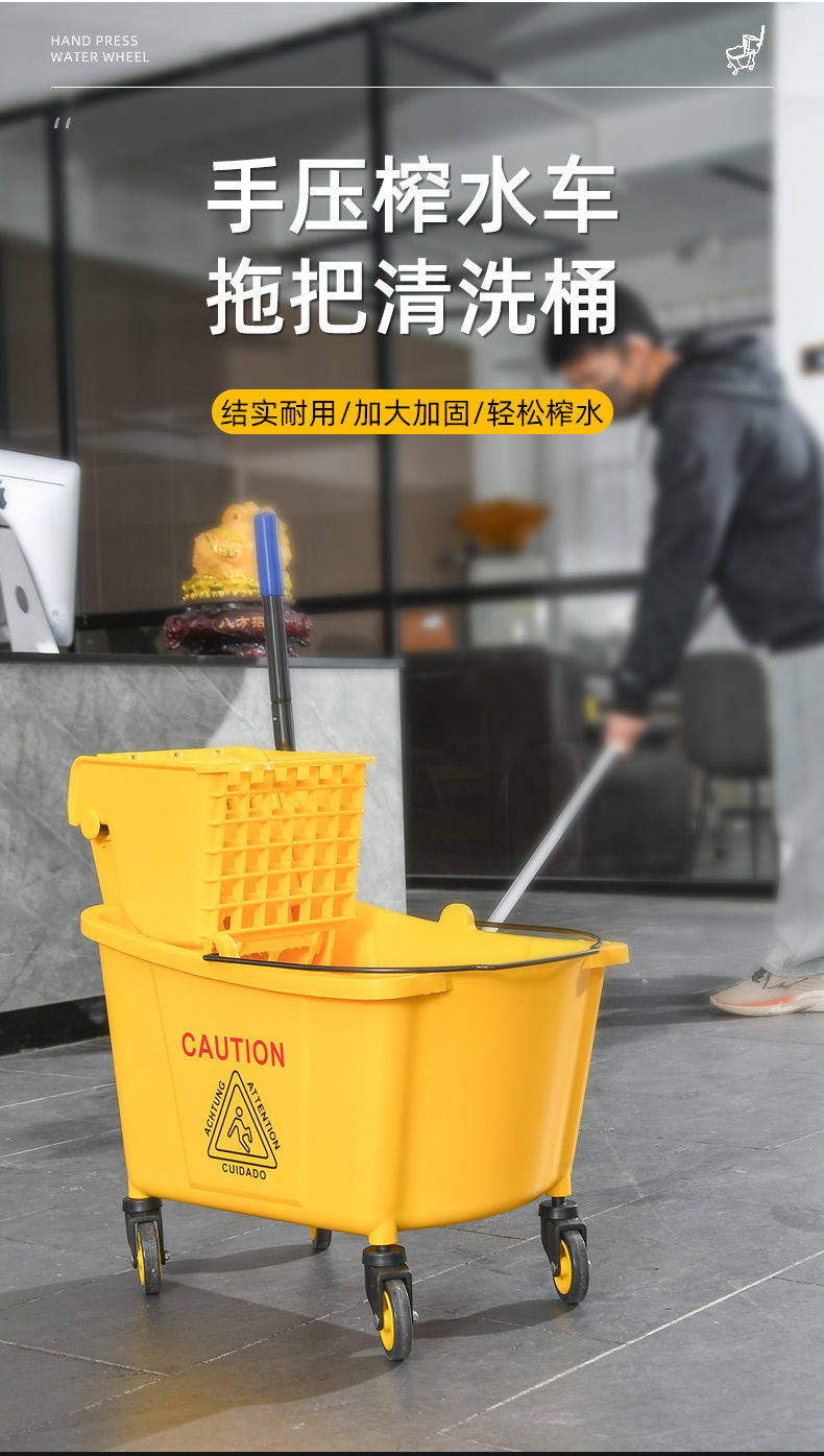 学校酒店商场清洁便捷柞水车塑料加厚单桶拖把桶手压式清洁挤水车