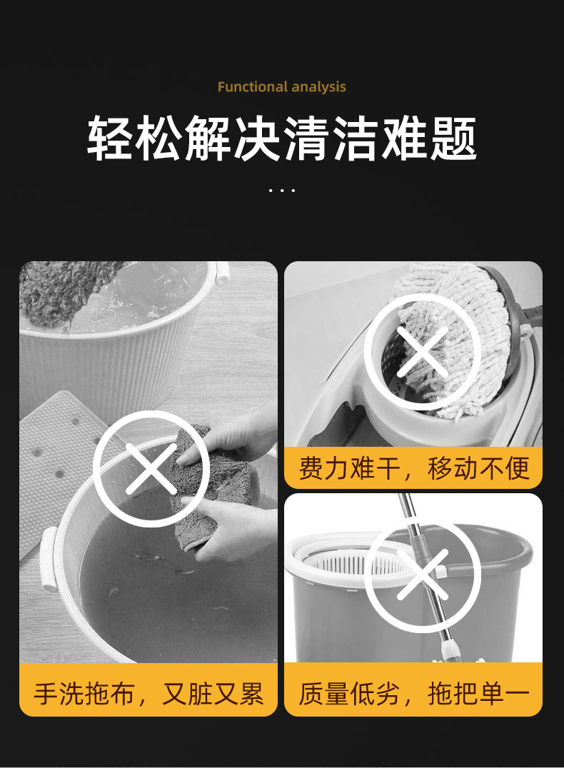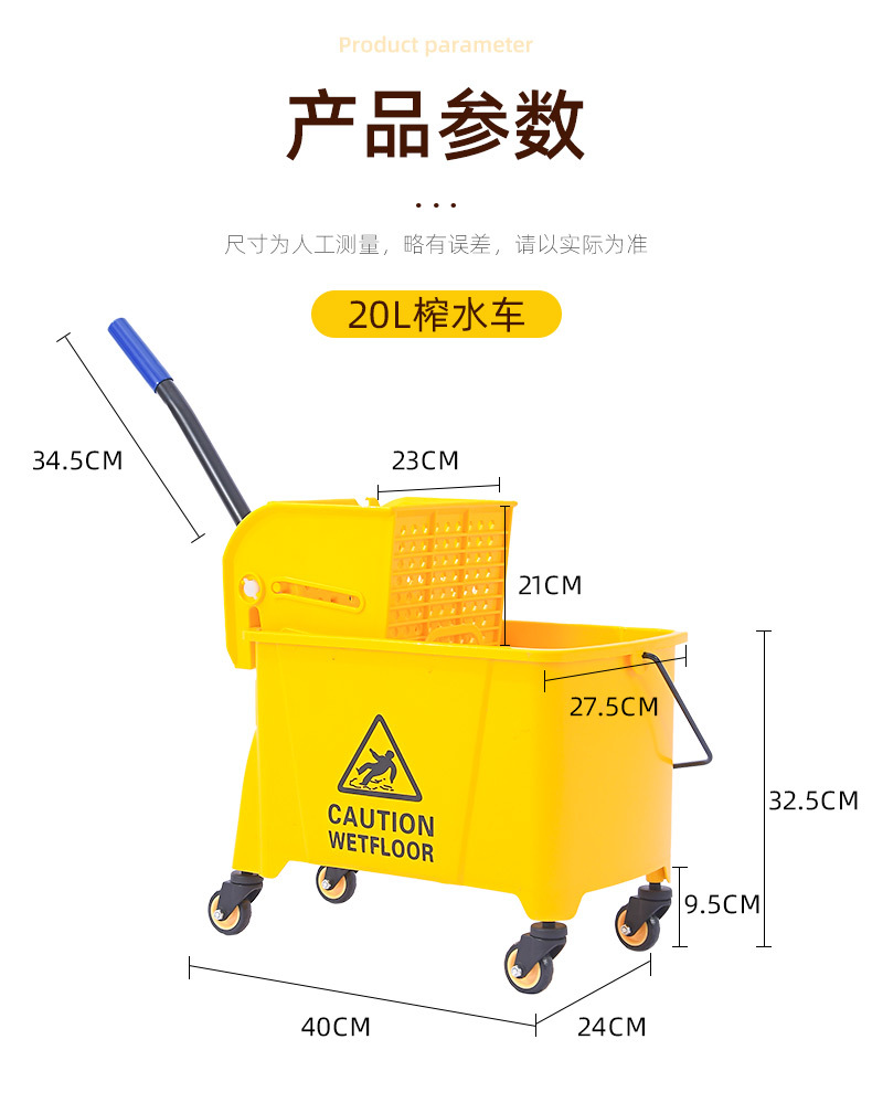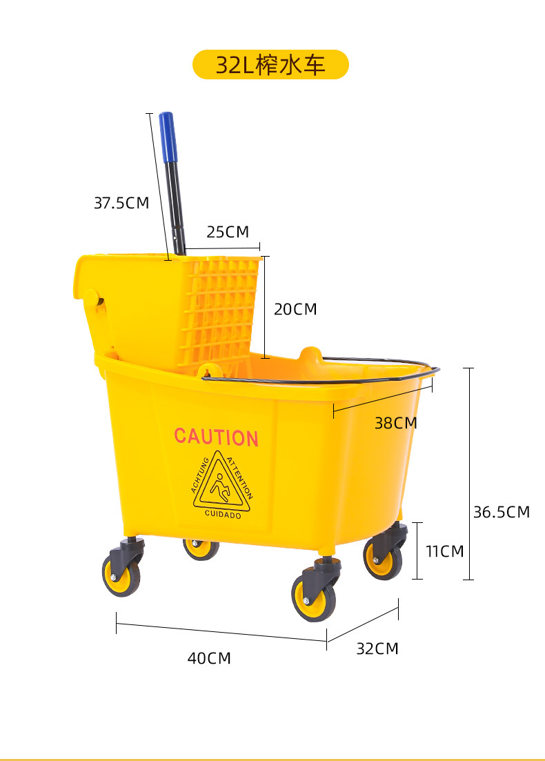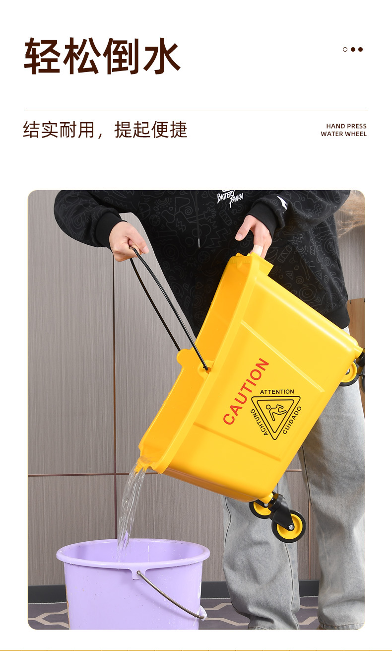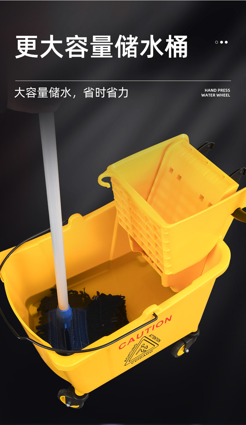 学校酒店商场清洁便捷柞水车塑料加厚单桶拖把桶手压式清洁挤水车