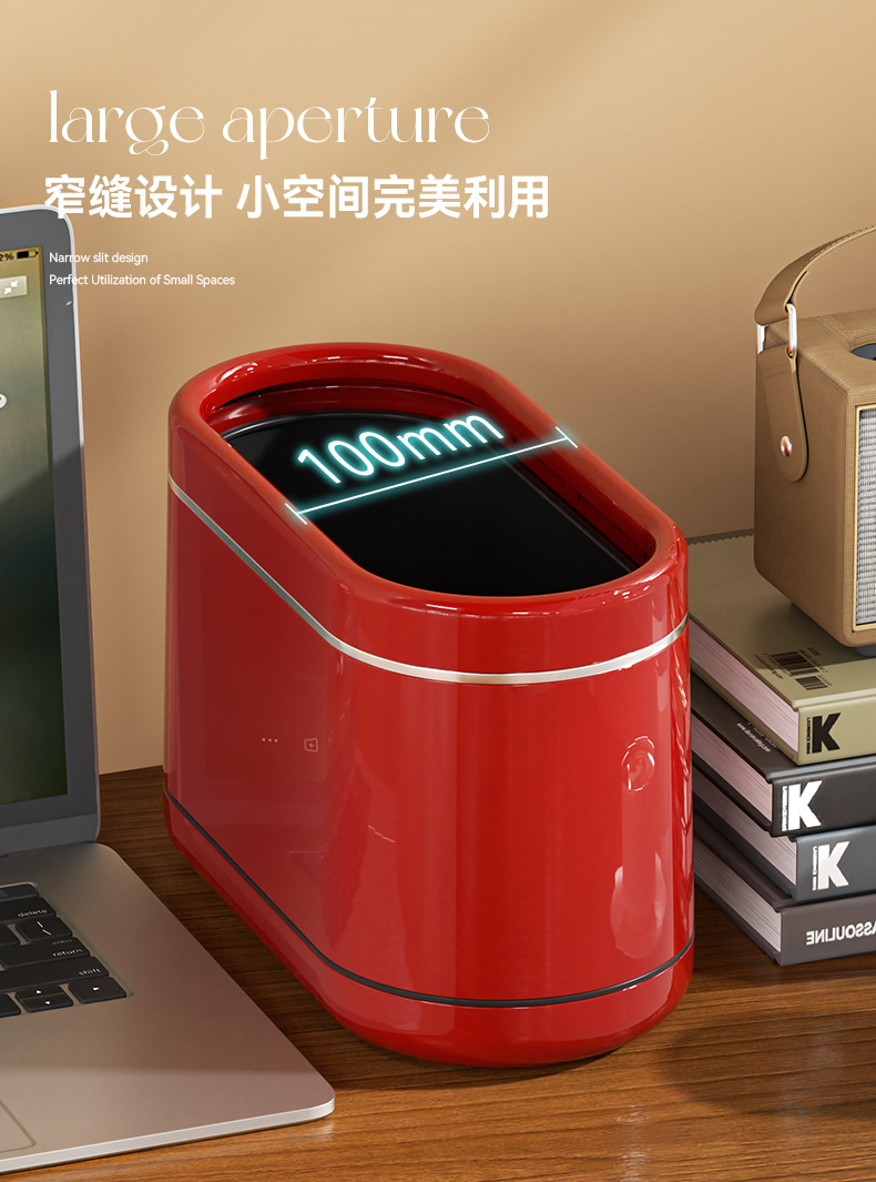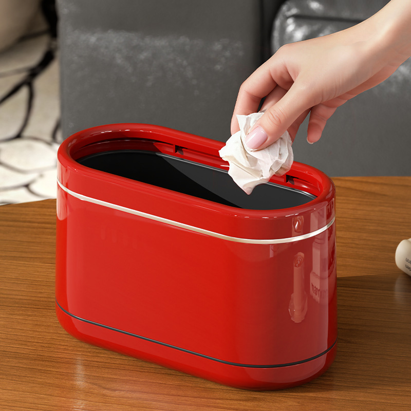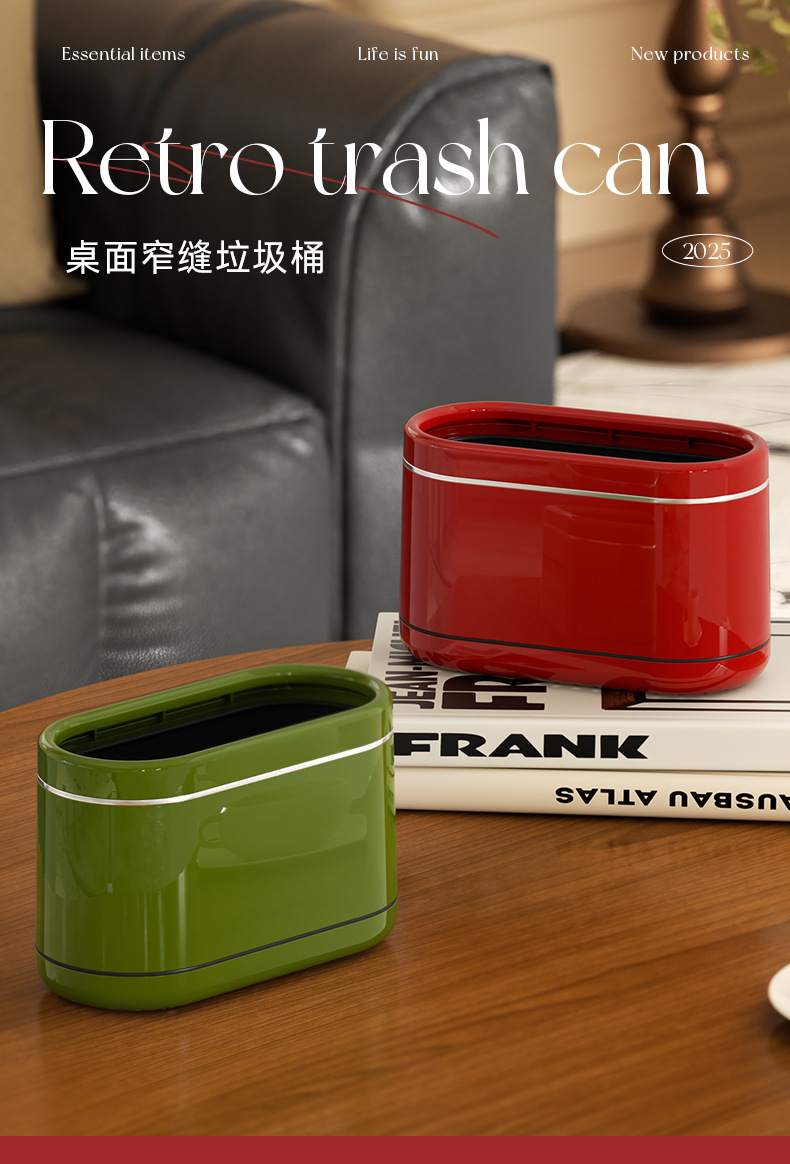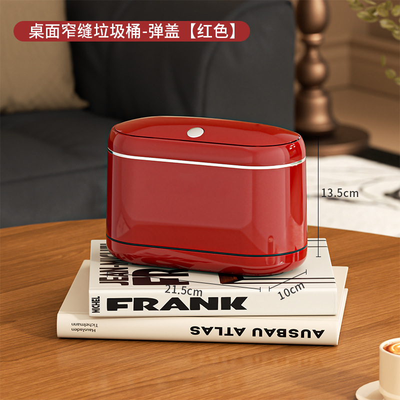 桌面窄缝垃圾桶家用小型办公室书桌迷你小垃圾篓复古高级感垃圾筒