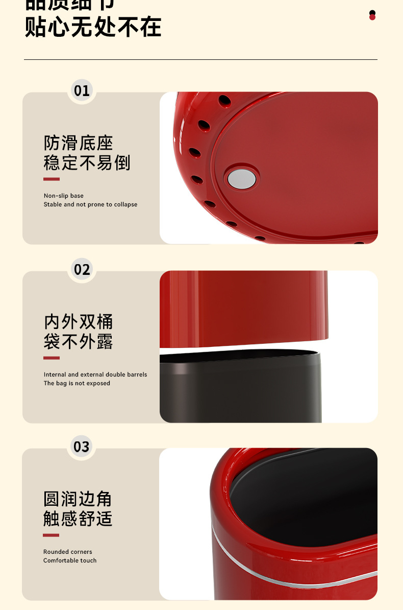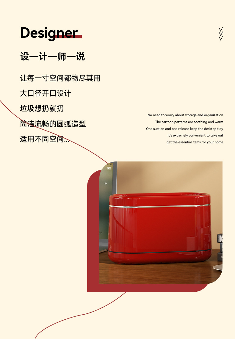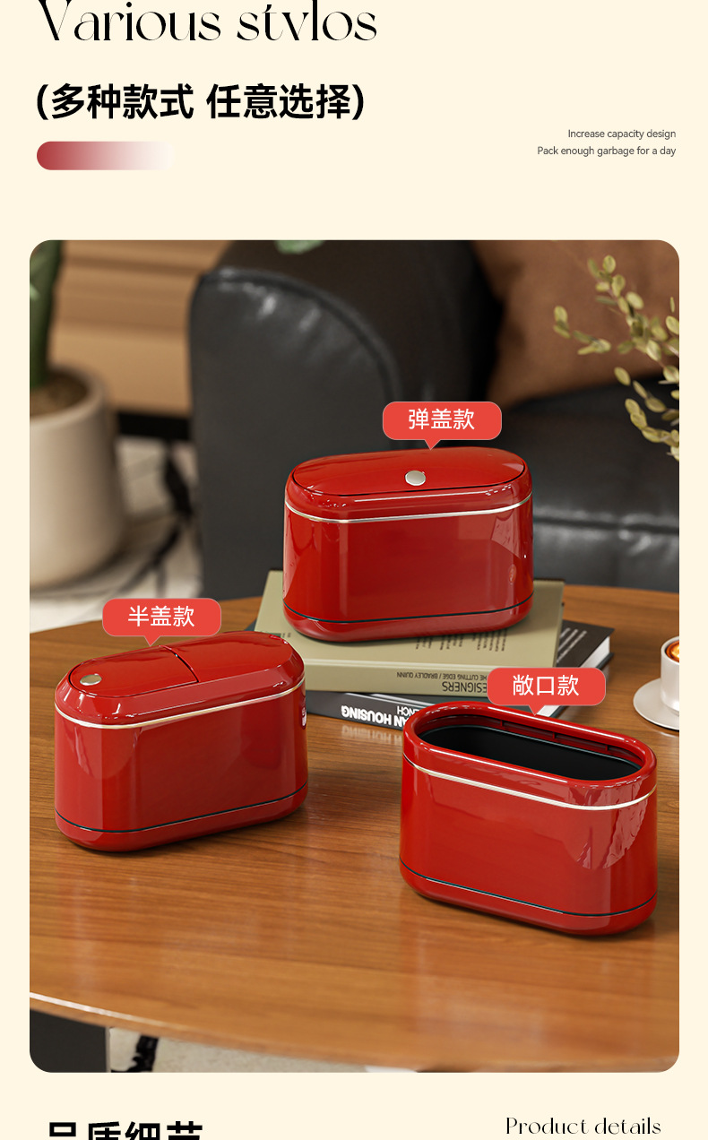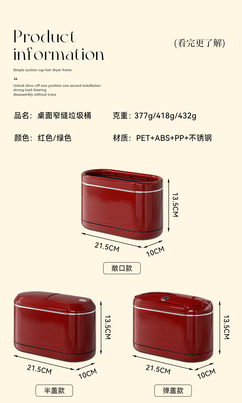 桌面窄缝垃圾桶家用小型办公室书桌迷你小垃圾篓复古高级感垃圾筒