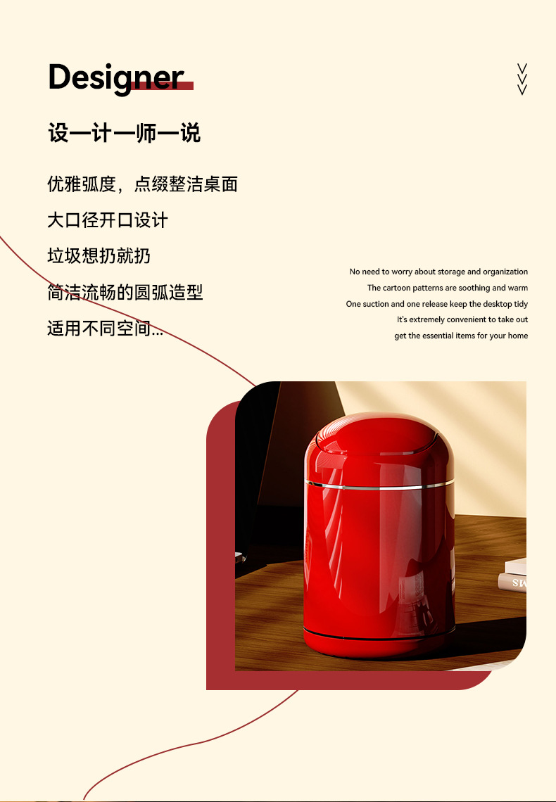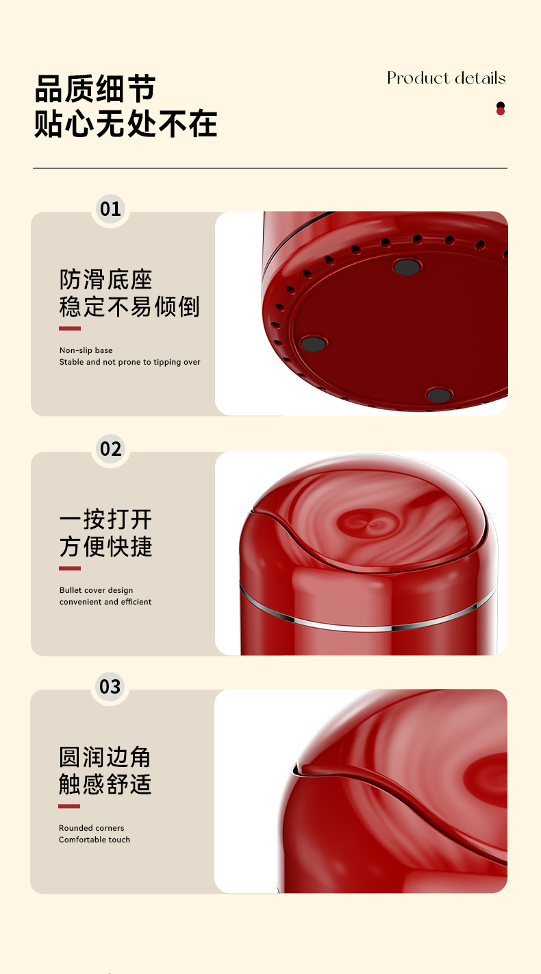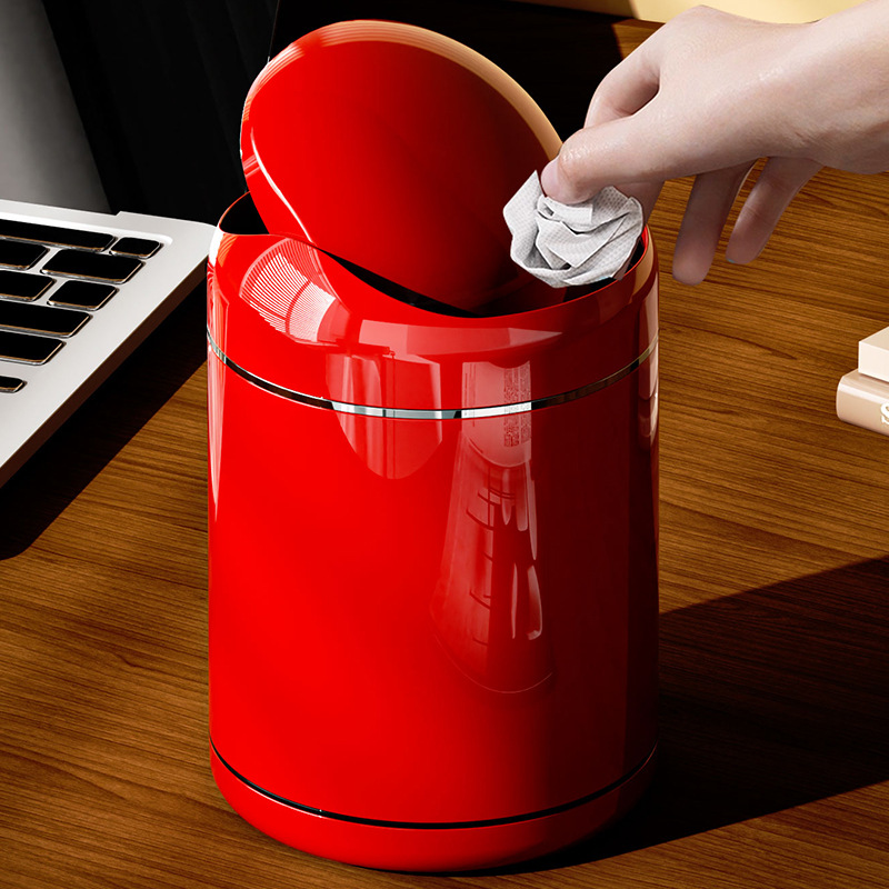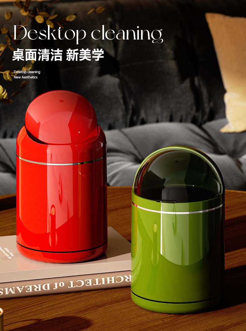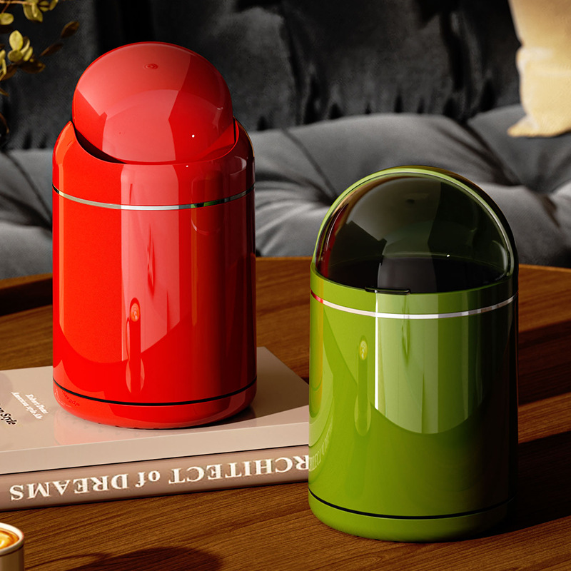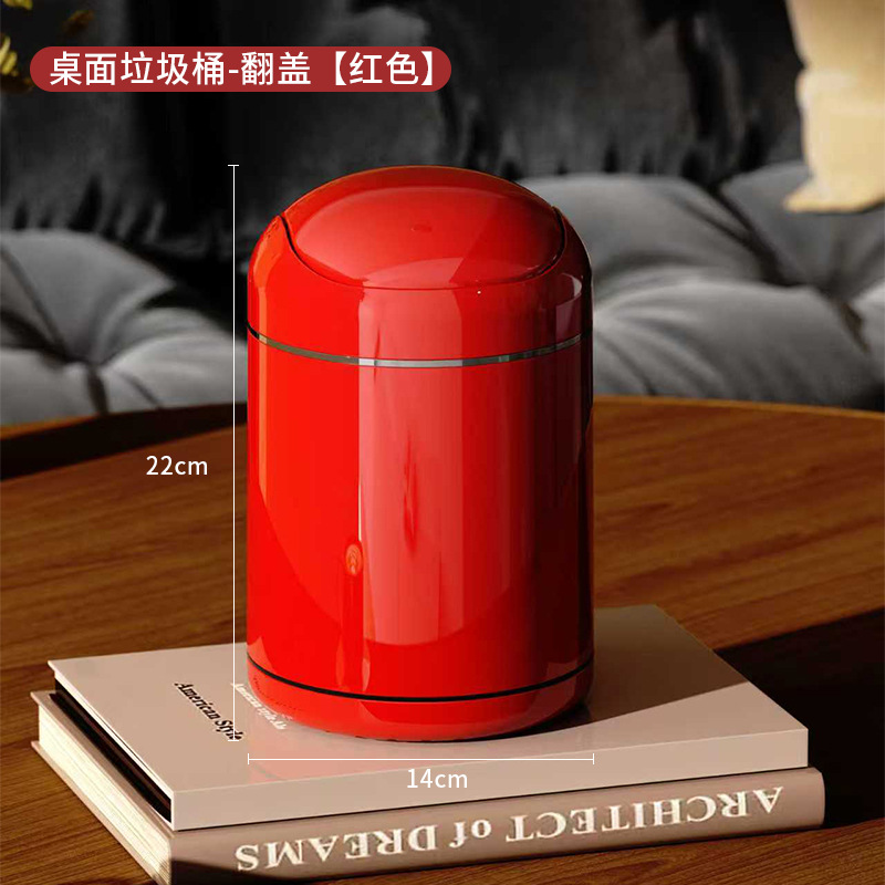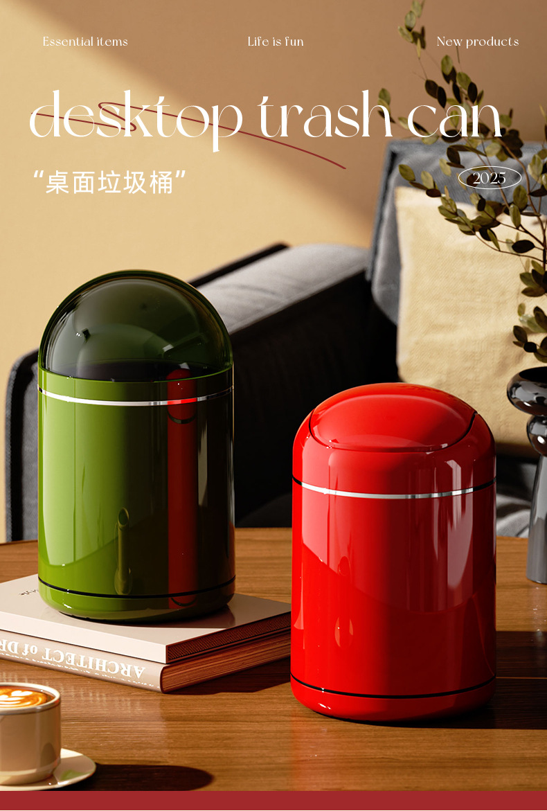 桌面圆形垃圾桶家用小号高颜值带盖2025新款餐桌卧室客厅收纳纸篓