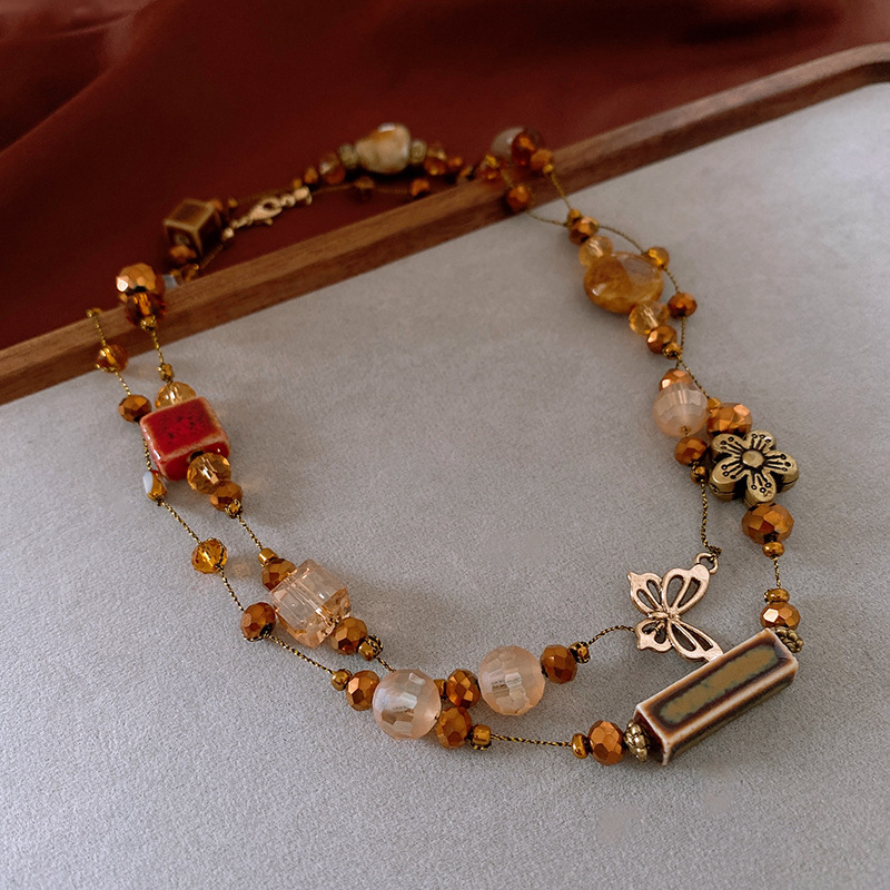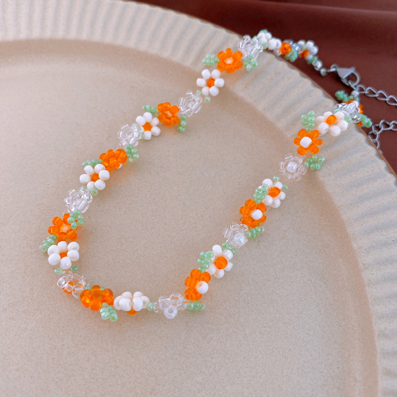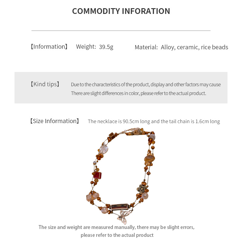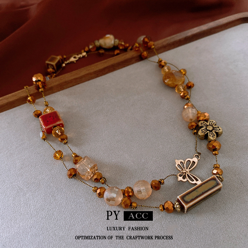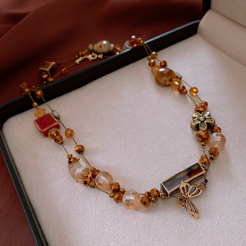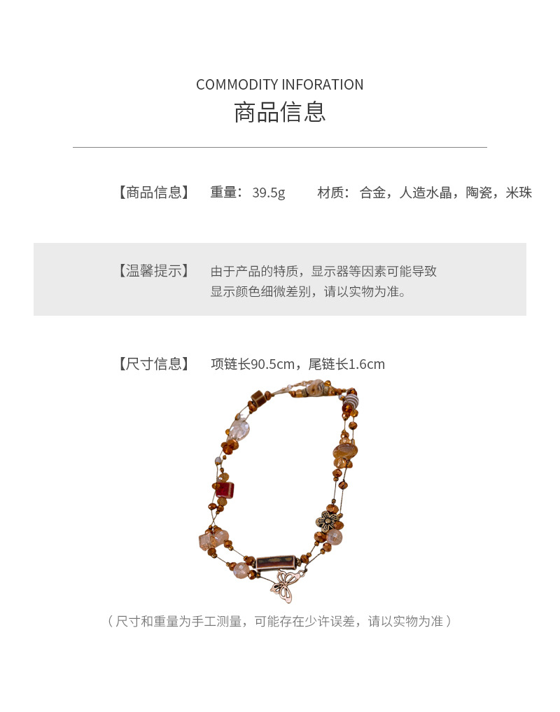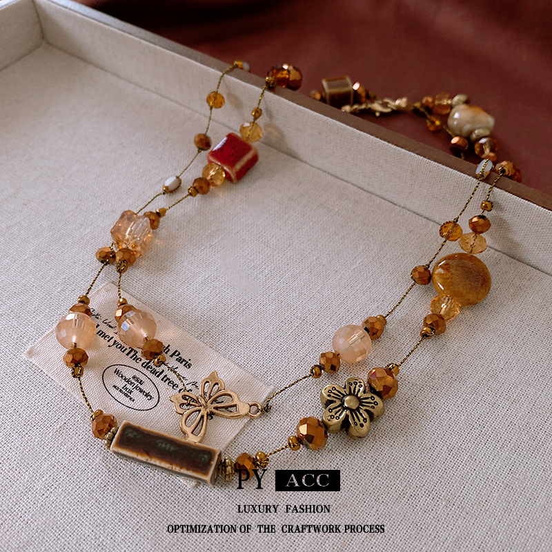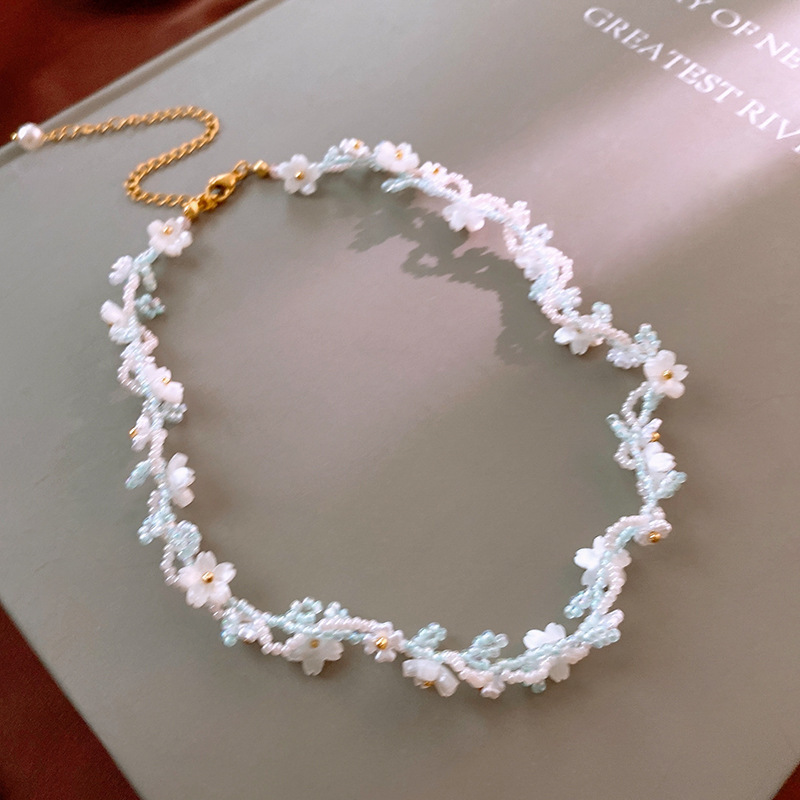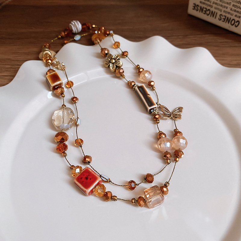 花朵陶瓷米珠串珠叠戴式项链复古精致时尚锁骨链设计感小众项饰女