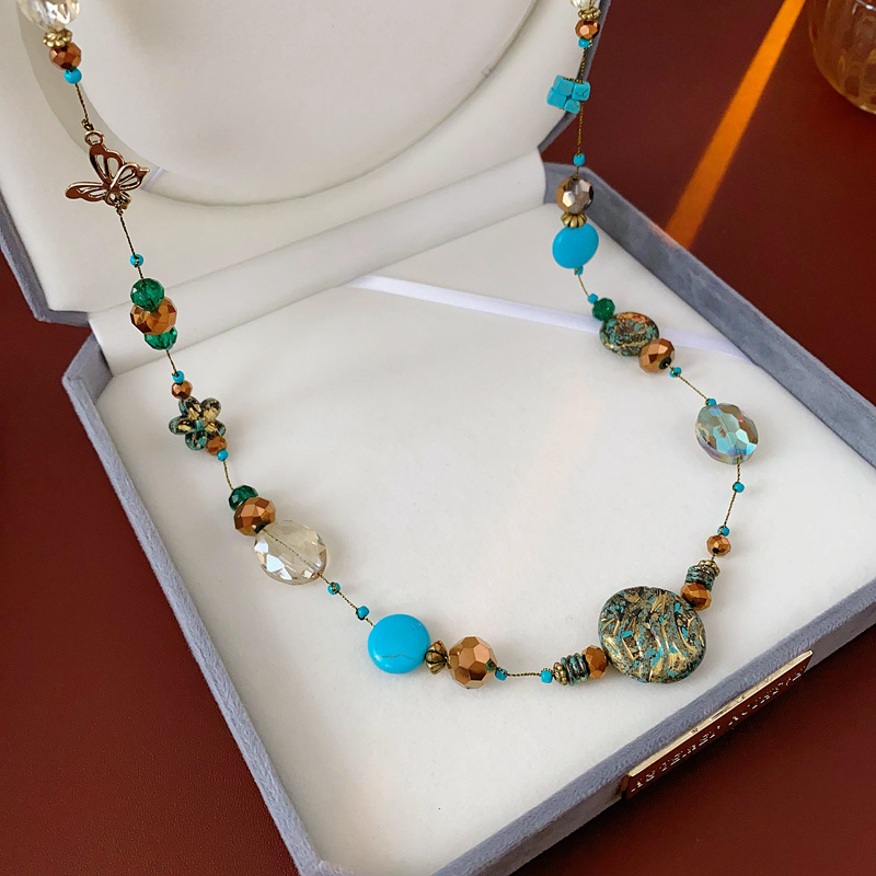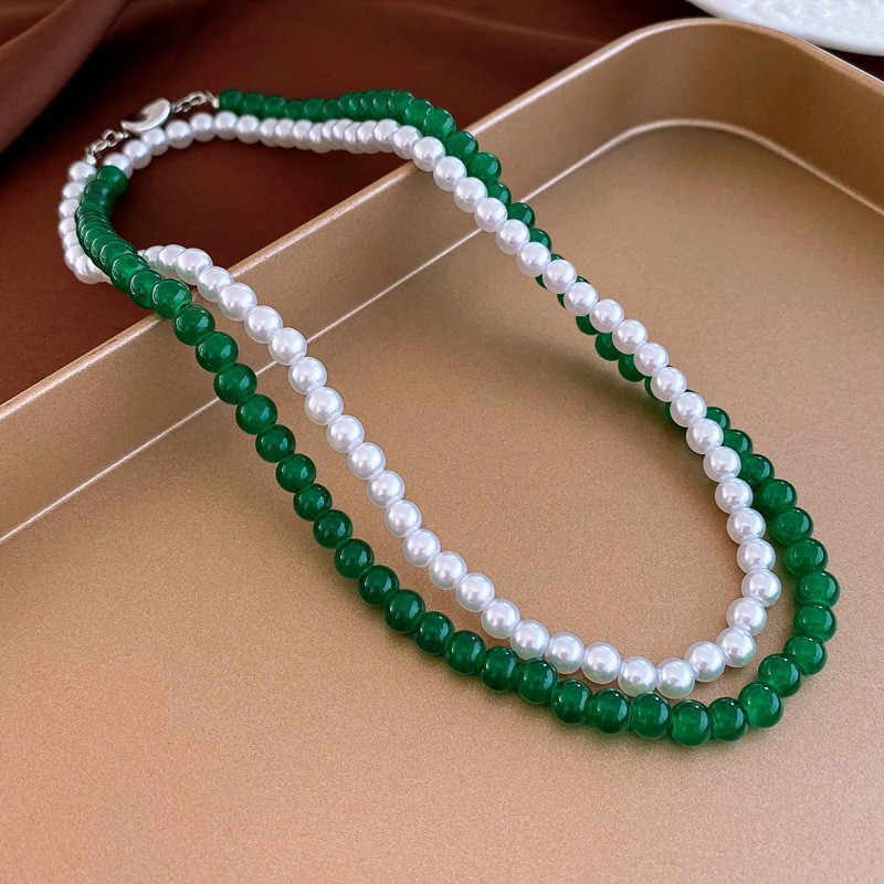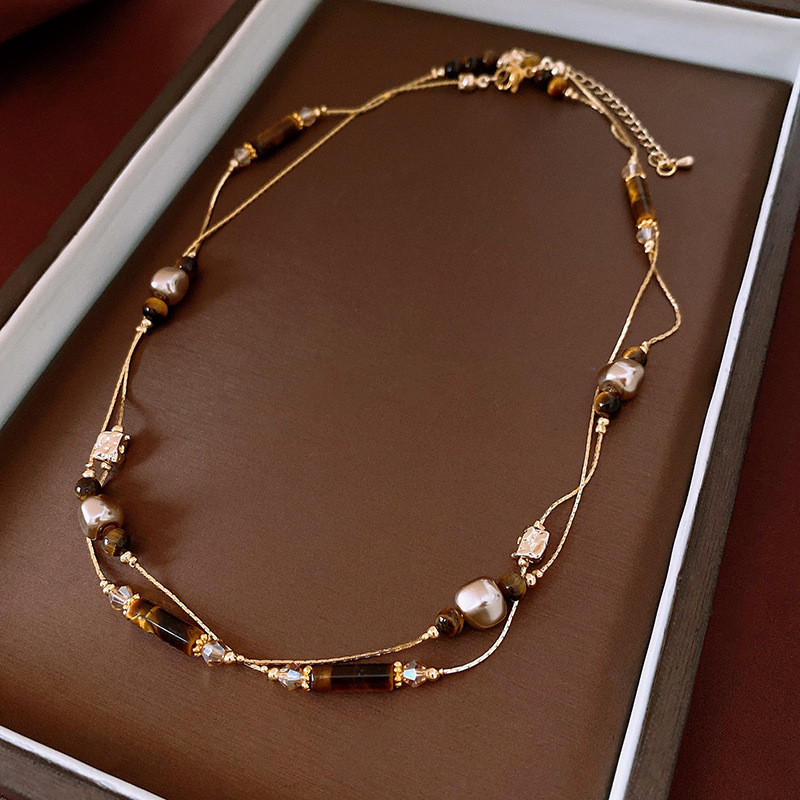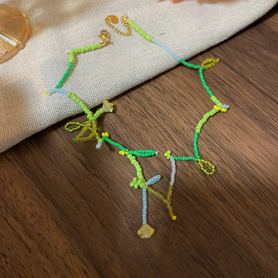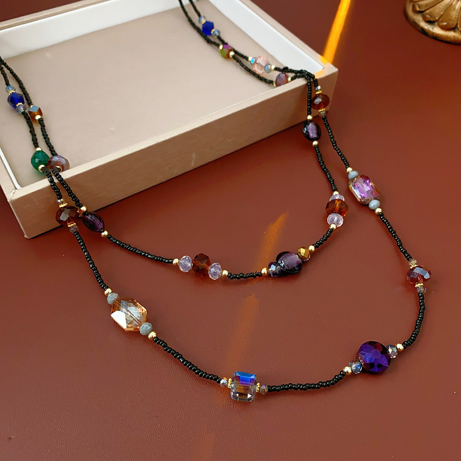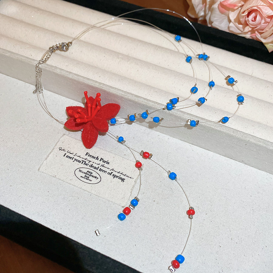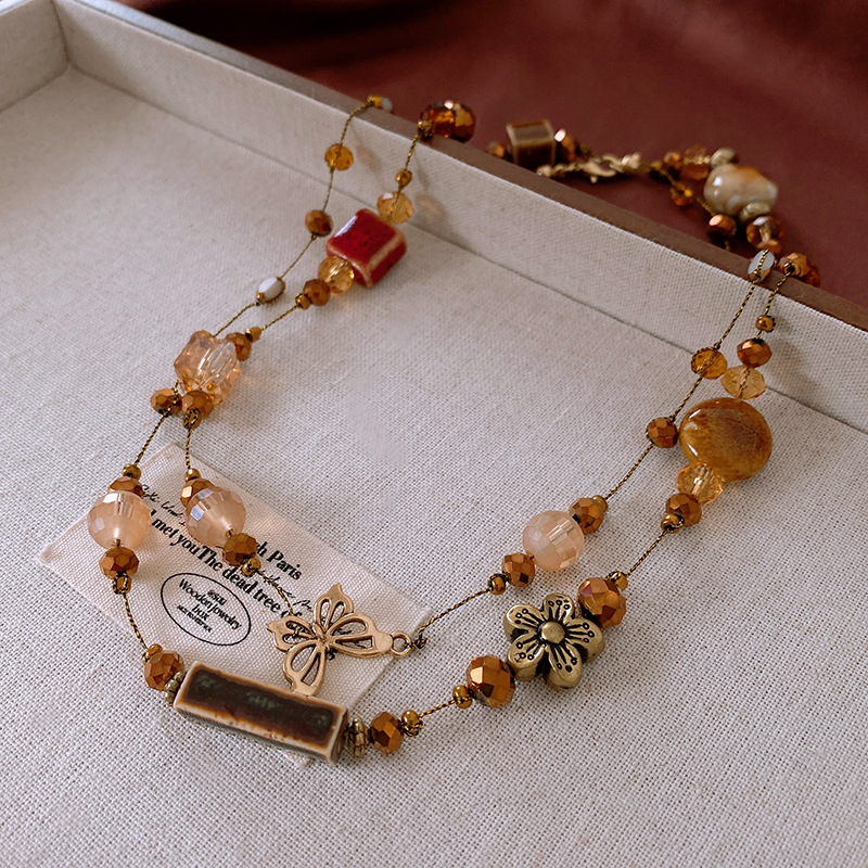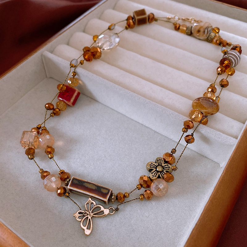 花朵陶瓷米珠串珠叠戴式项链复古精致时尚锁骨链设计感小众项饰女
