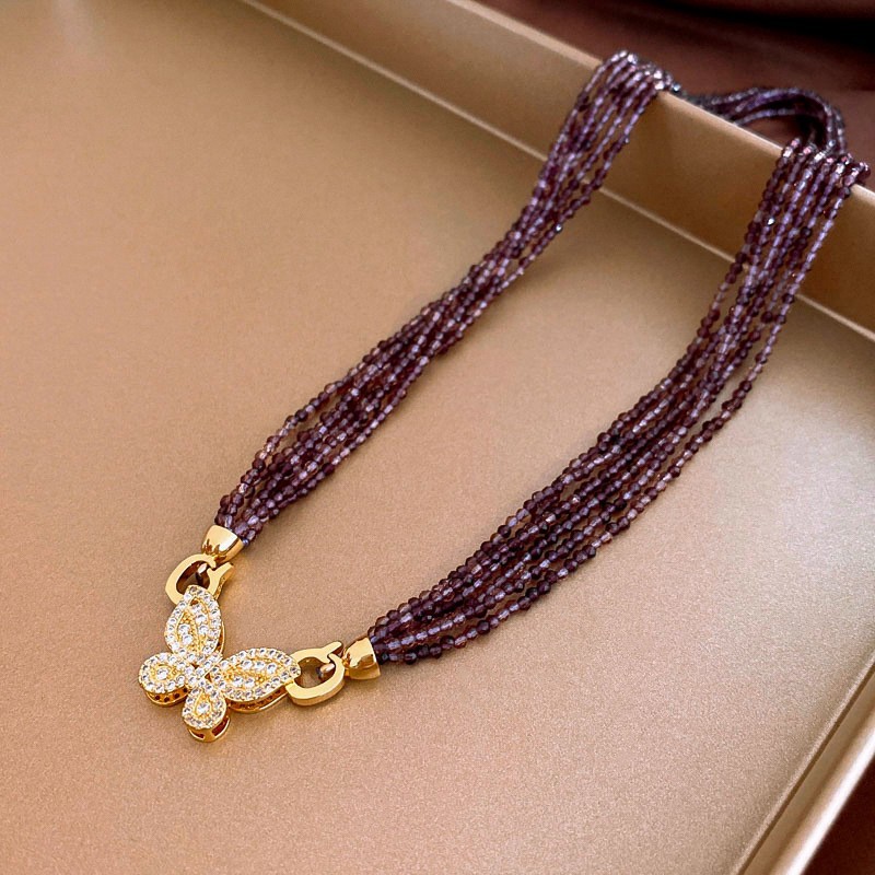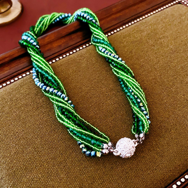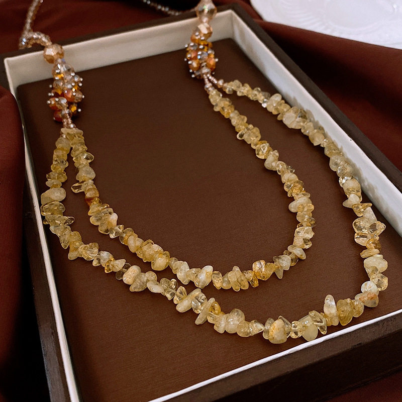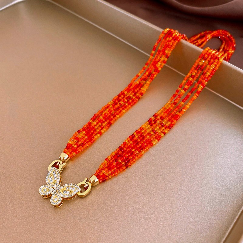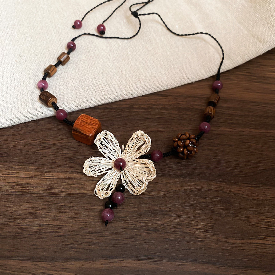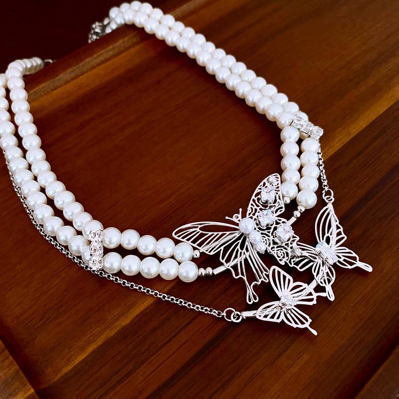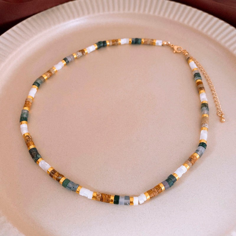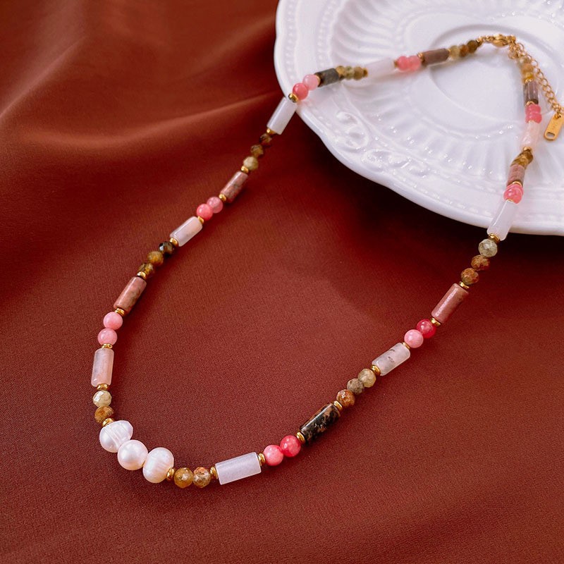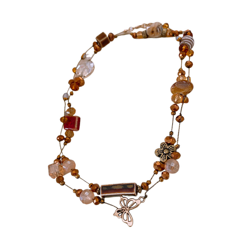 花朵陶瓷米珠串珠叠戴式项链复古精致时尚锁骨链设计感小众项饰女
