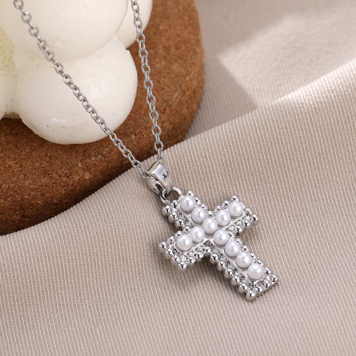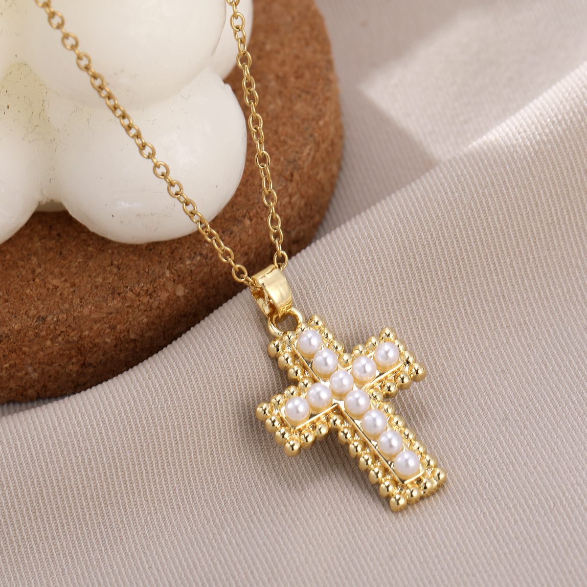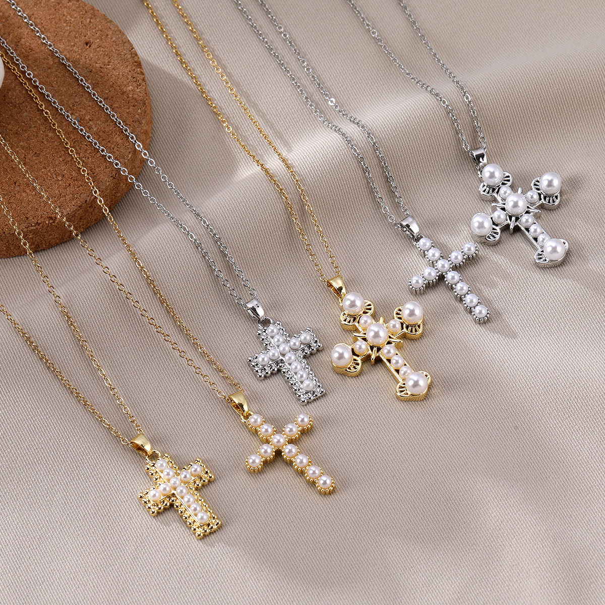 日韩风跨境复古十字架吊坠O字链微镶锆石珍珠清新甜美饰品项链