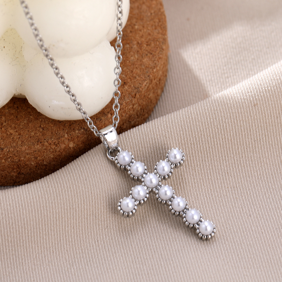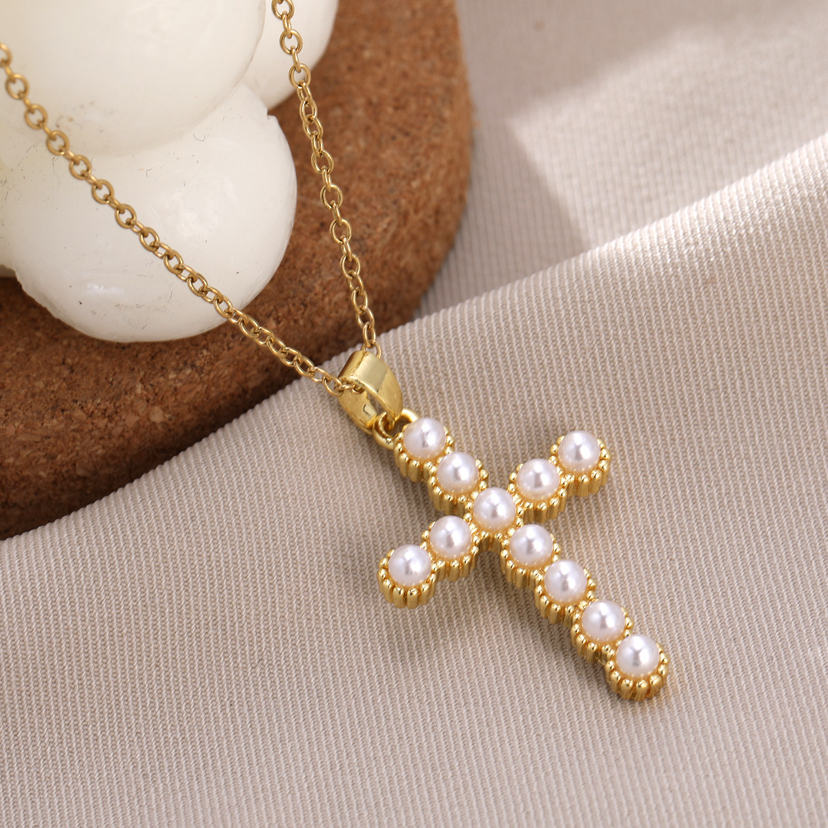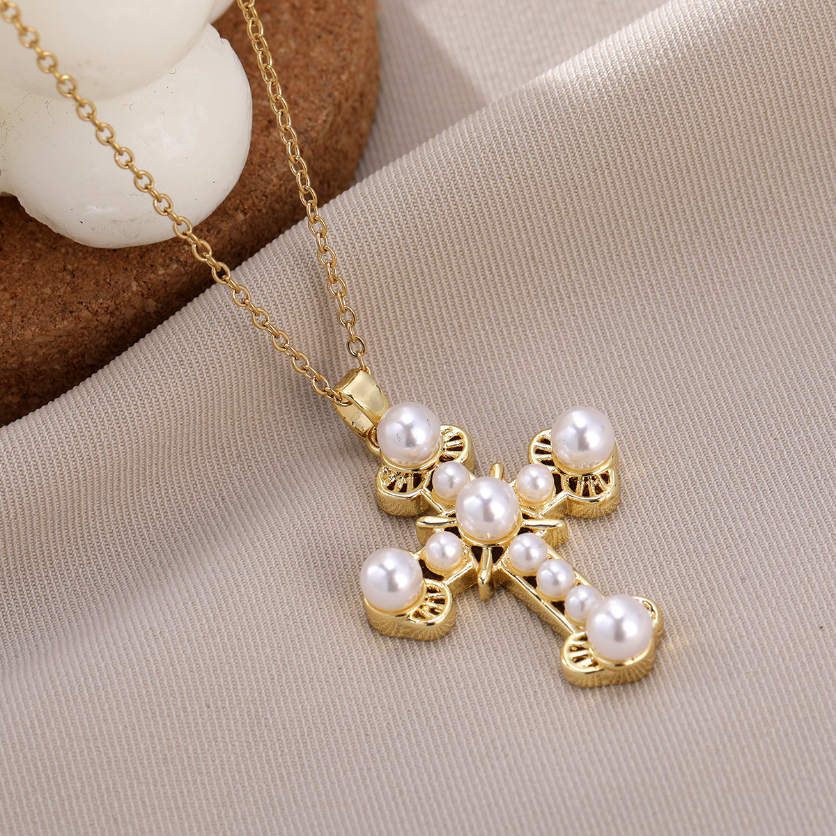 日韩风跨境复古十字架吊坠O字链微镶锆石珍珠清新甜美饰品项链